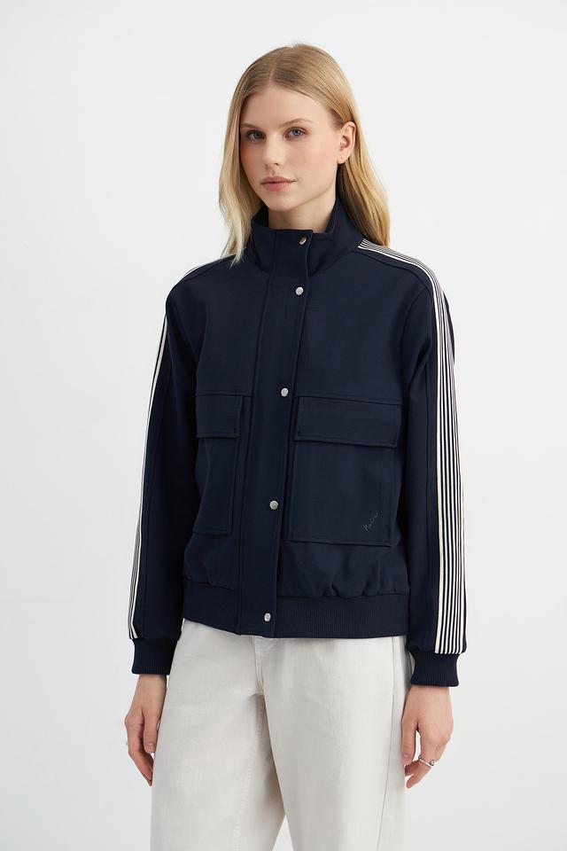 Благодаря составу – 62% вискоза, 33% нейлон и 5% эластан – жакет приятен к телу, хорошо держит форму и обеспечивает свободу движений. Контрастные полосы на рукавах добавляют образу динамичности и оригинальности.