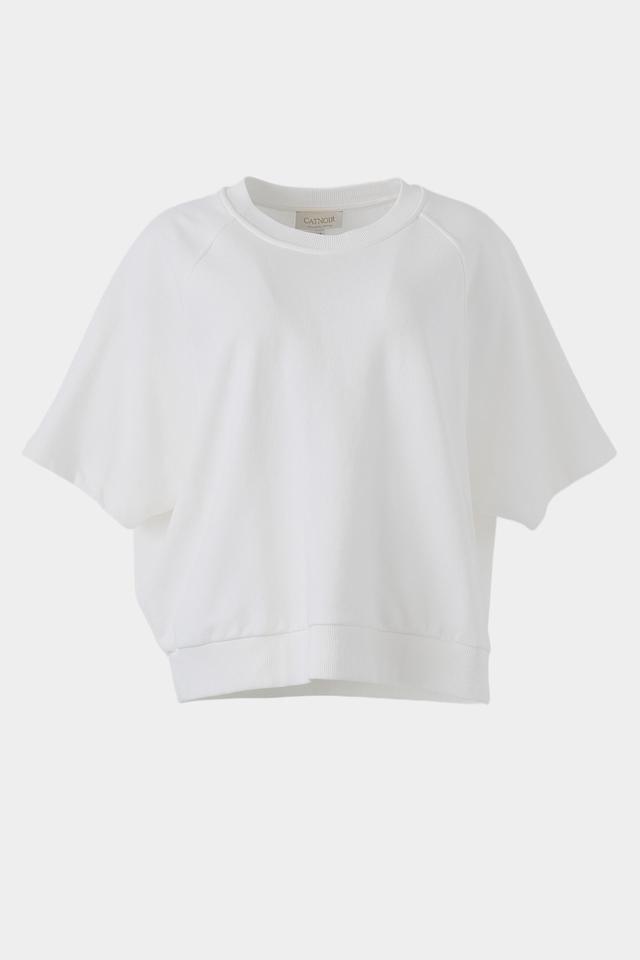 Белый пуловер от Catnoir с коротким рукавом – это стильное и комфортное решение для повседневного образа. Изготовлен из мягкого хлопка с добавлением полиэстера, обеспечивающего удобство в носке и сохранение формы. Состав: хлопок 65%, полиэстер 35%