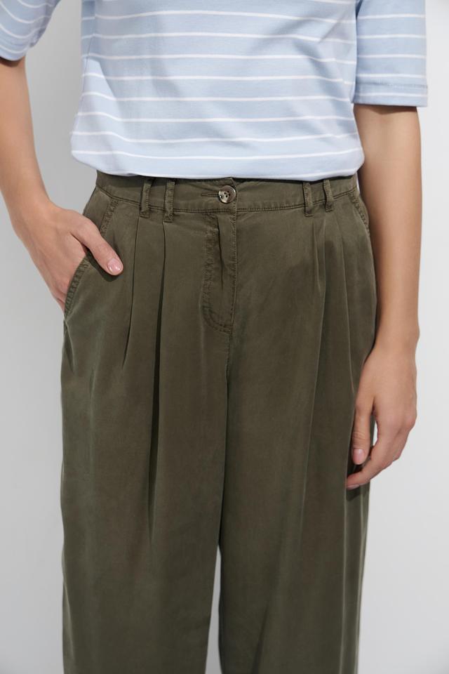 Женские брюки палаццо Catnoir цвета хаки — это стильное и комфортное решение для создания элегантного образа. Модель выполнена из 100% лиоцела, что обеспечивает приятные тактильные ощущения и отличную посадку. Состав: лиоцел 100%