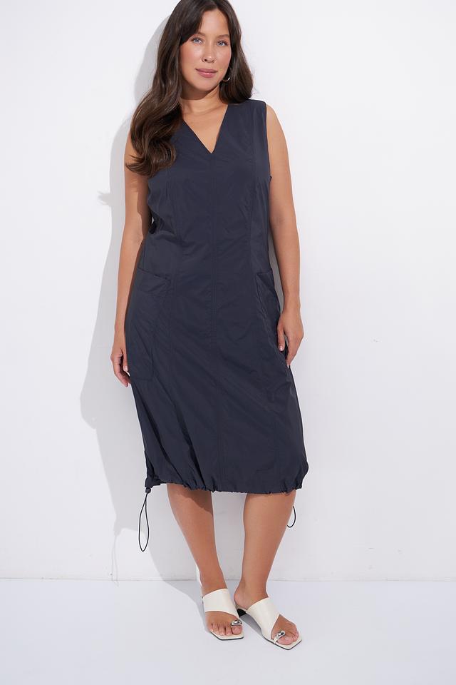 Тёмно-синее платье Catnoir без рукавов – это стильное и комфортное решение для повседневного образа. Платье имеет V-образный вырез и сборку по низу, что придает ему лёгкость и воздушность. Изготовлено из 100% нейлона. Состав: нейлон 100%