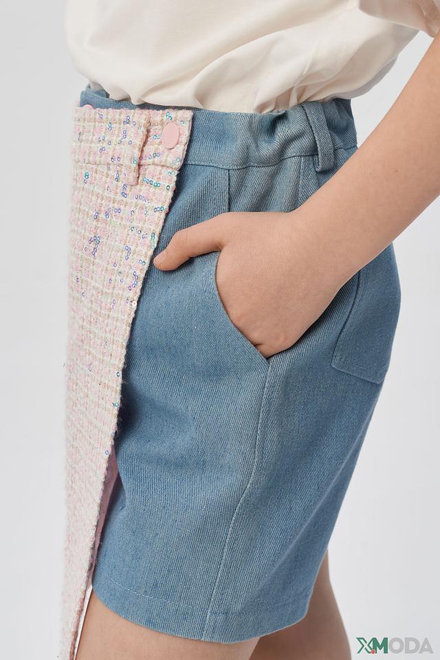Джинсовый цвет и блестящая отделка придают юбке-шортам особый шарм и делают ее отличным выбором для праздничных мероприятий и повседневных прогулок. Прекрасно сочетается с различными топами, футболками и блузками, позволяя создавать множество стильных комбинаций. Ваша маленькая принцесса будет в восторге от этой модной новинки!