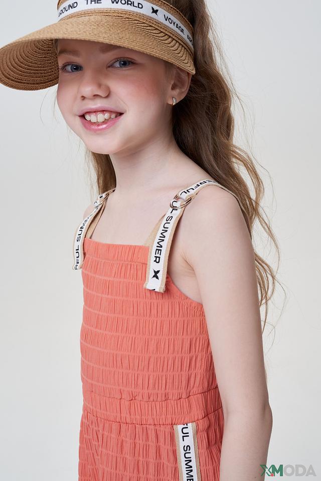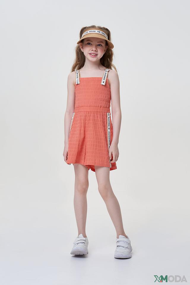Персиковый комбинезон от Choupette – удобный и стильный выбор для юных модниц. Изготовлен из 100% хлопка, обеспечивающего комфорт в течение дня. Модель дополнена декоративными бретелями с надписями. Состав: хлопок 100%