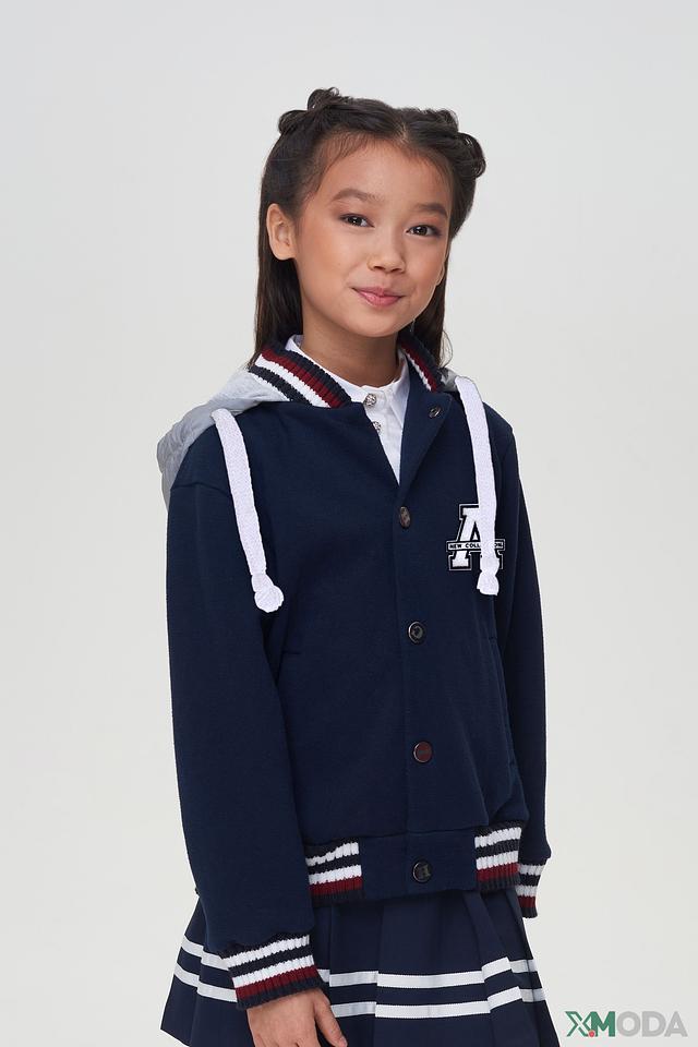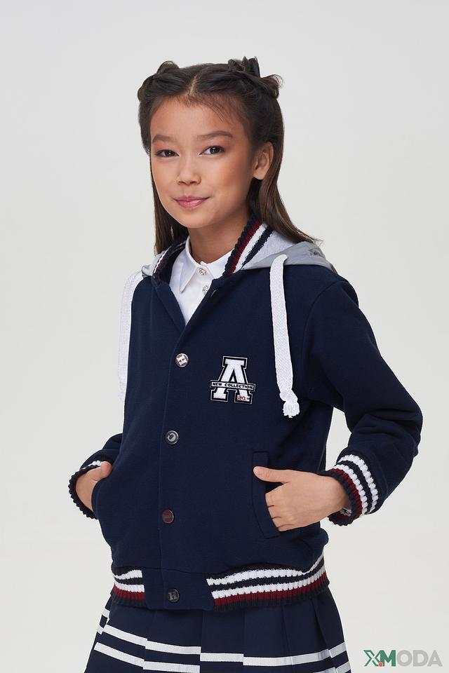 Синяя куртка Choupette для девочки с капюшоном и контрастной отделкой. Модель выполнена в спортивном стиле с элементами школьной формы, идеально подходит для повседневной носки. Состав: хлопок 90%, полиуретан 10%