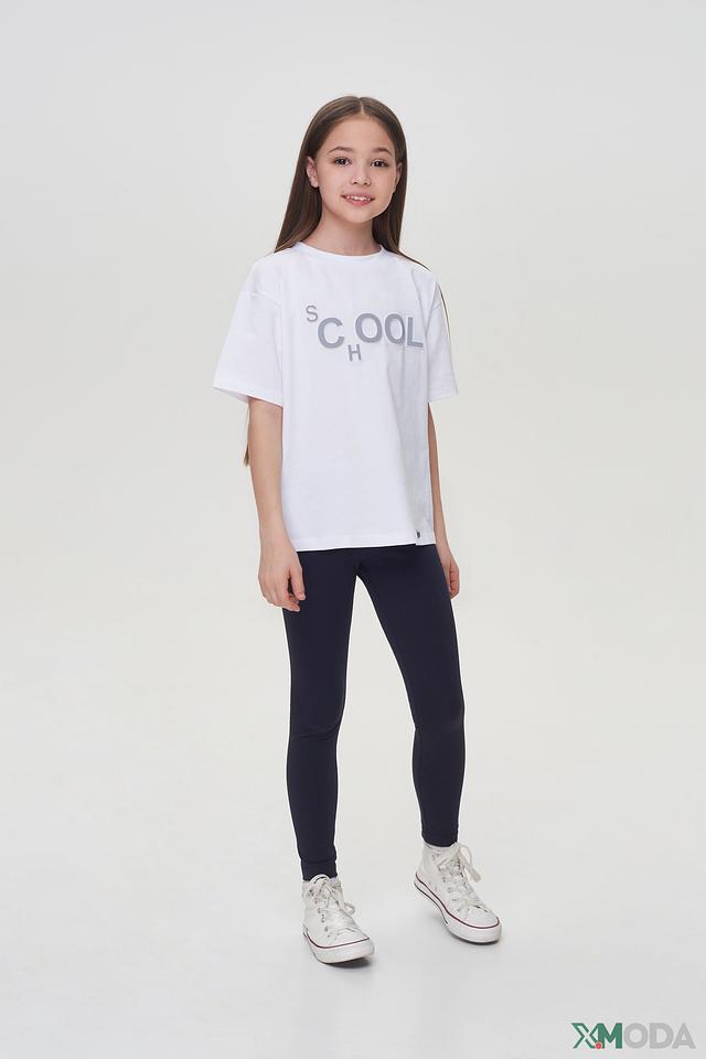 Модель изготовлена из высококачественного хлопка (90%) с добавлением полиуретана (10%), что обеспечивает мягкость, комфорт и хорошую посадку по фигуре. Эластичный пояс с широкой вставкой, украшенной надписью "SCHOOL FASHION", не сдавливает и надежно фиксирует лосины на талии.