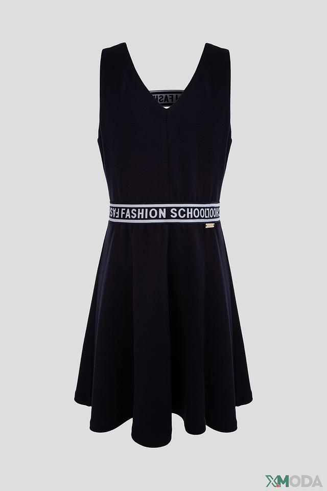 - Стильный дизайн: Классический А-силуэт с V-образным вырезом придает школьному платью элегантность. Расклешенная юбка обеспечивает свободу движений, а декоративная лента с надписью на талии добавляет современный акцент.
