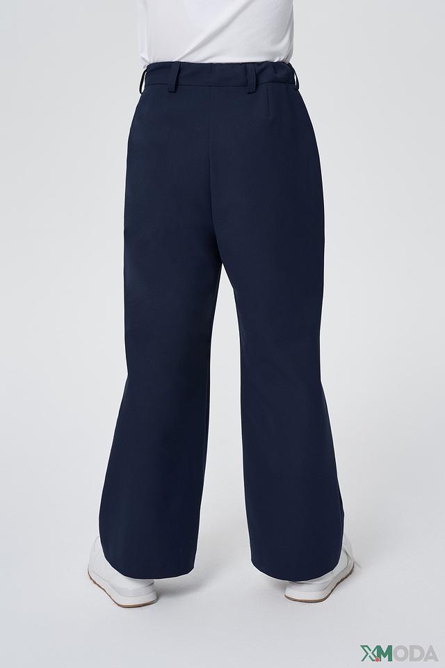 Брюки имеют прямой крой и стандартную посадку по талии, обеспечивая свободу движений и комфорт в течение всего дня. На брюках предусмотрены боковые карманы, а также аккуратные складки спереди, придающие им более строгий и официальный вид.