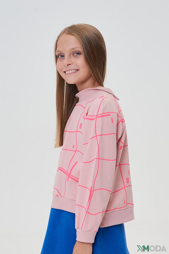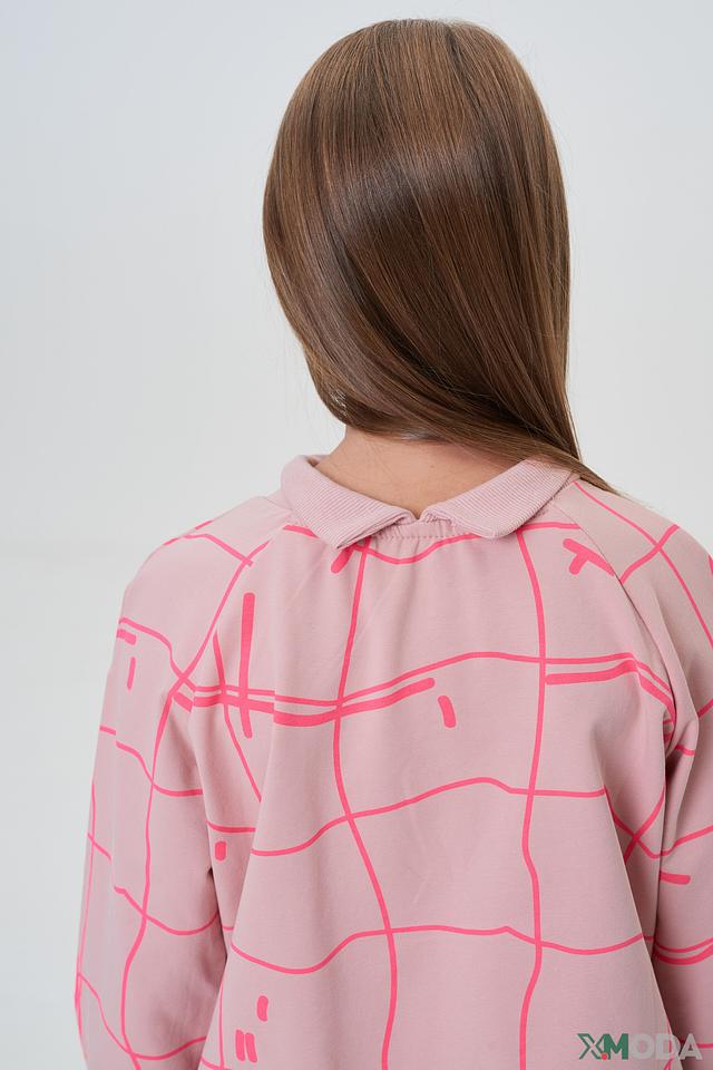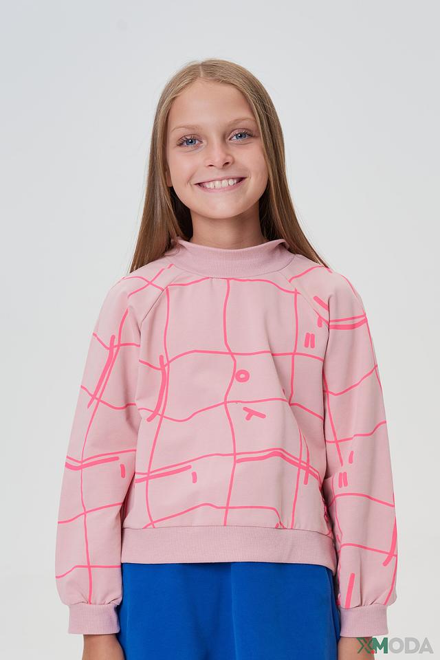 Розовый джемпер Choupette для девочки с оригинальным принтом в виде сетки. Изготовлен из мягкого хлопка с небольшим добавлением полиуретана для комфорта и сохранения формы. Состав: хлопок 95%, полиуретан 5%