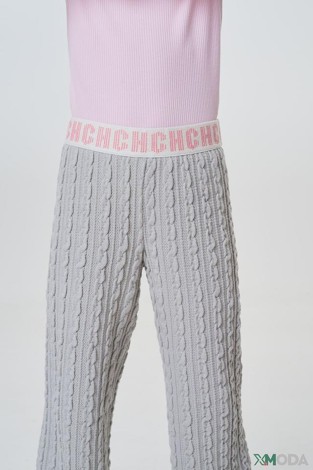 Стильные брюки от Choupette серого цвета, выполнены из мягкого трикотажа с рельефным узором "косы". Удобная посадка и эластичный пояс обеспечивают комфорт и свободу движений. Состав: хлопок 93%, полиуретан 7%