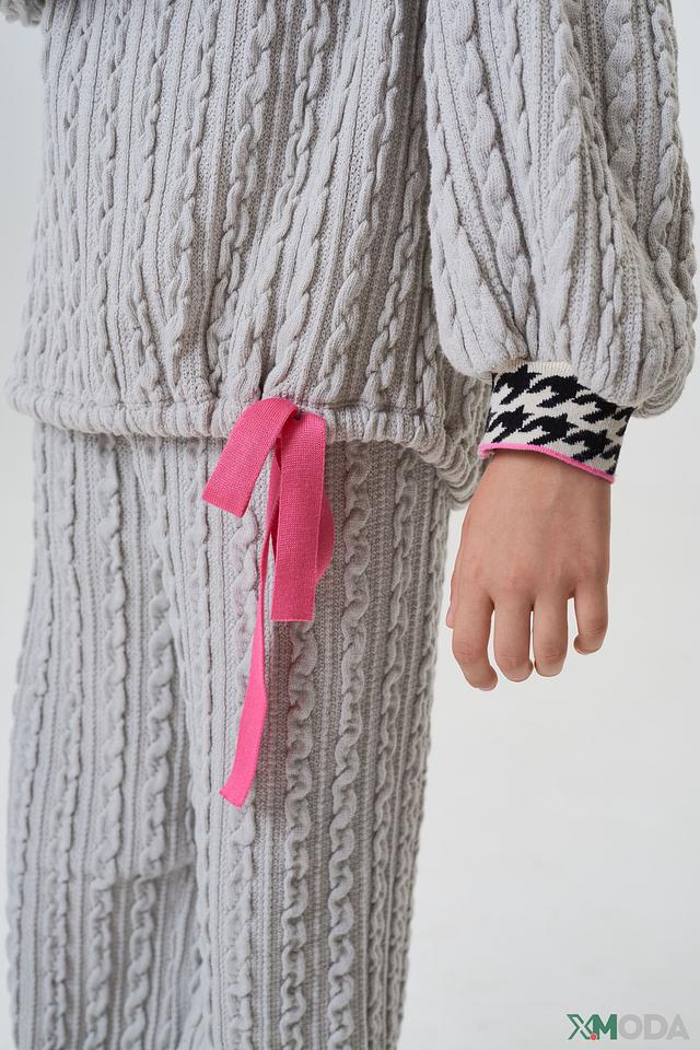 Серый джемпер Choupette для девочки с объёмной косичкой и завязками на талии. Уютная модель выполнена из мягкого хлопка с добавлением полиэстера и полиуретана. Состав: хлопок 95%, полиэстер 4%, полиуретан 1%