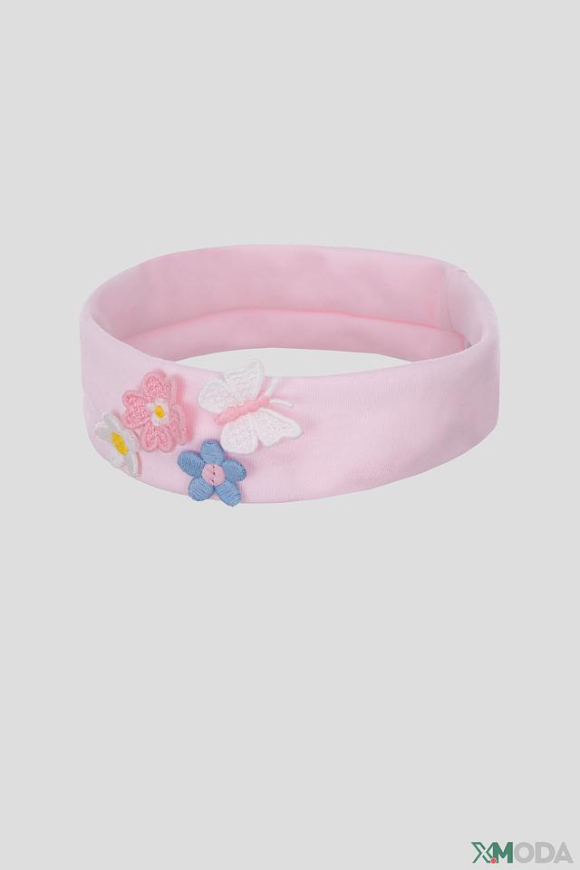 Розовая повязка Choupette для девочки, украшенная аппликациями в виде цветов и бабочки. Аксессуар выполнен из мягкого хлопка, обеспечивающего комфорт и удобство ношения. Состав: хлопок 100%