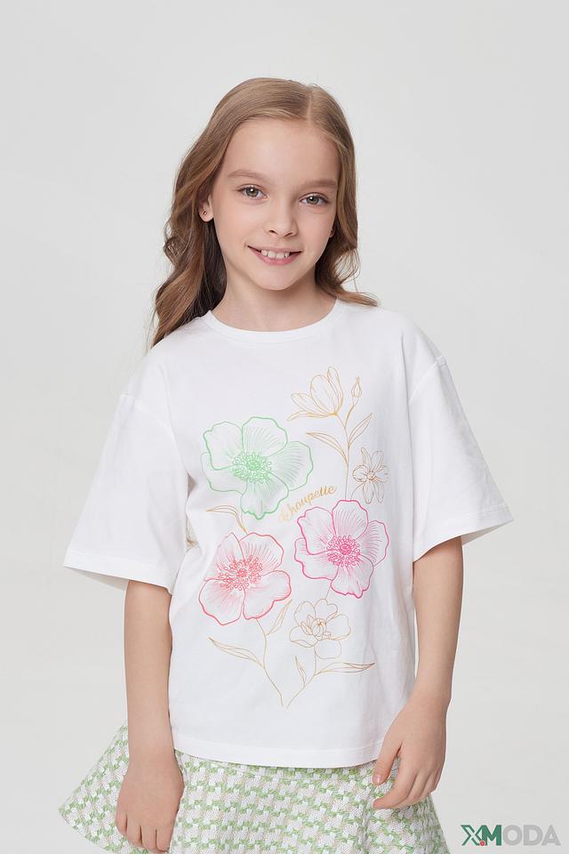 Белая футболка Choupette для девочки с нежным цветочным принтом. Изготовлена из мягкого хлопка с добавлением эластана для комфорта и свободы движений. Стильный и удобный вариант для повседневной носки. Состав: хлопок 96%, эластан 4%