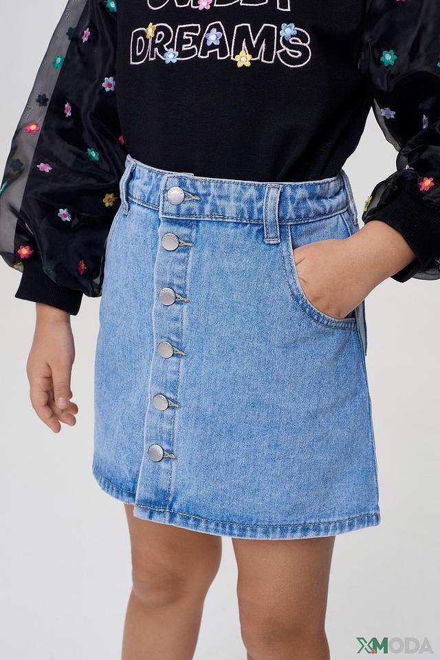 Джинсовая юбка Choupette голубого цвета – стильная и удобная модель для юных модниц. Юбка выполнена из 100% хлопка, имеет пояс на резинке и застежку на пуговицы спереди. Состав: хлопок 100%