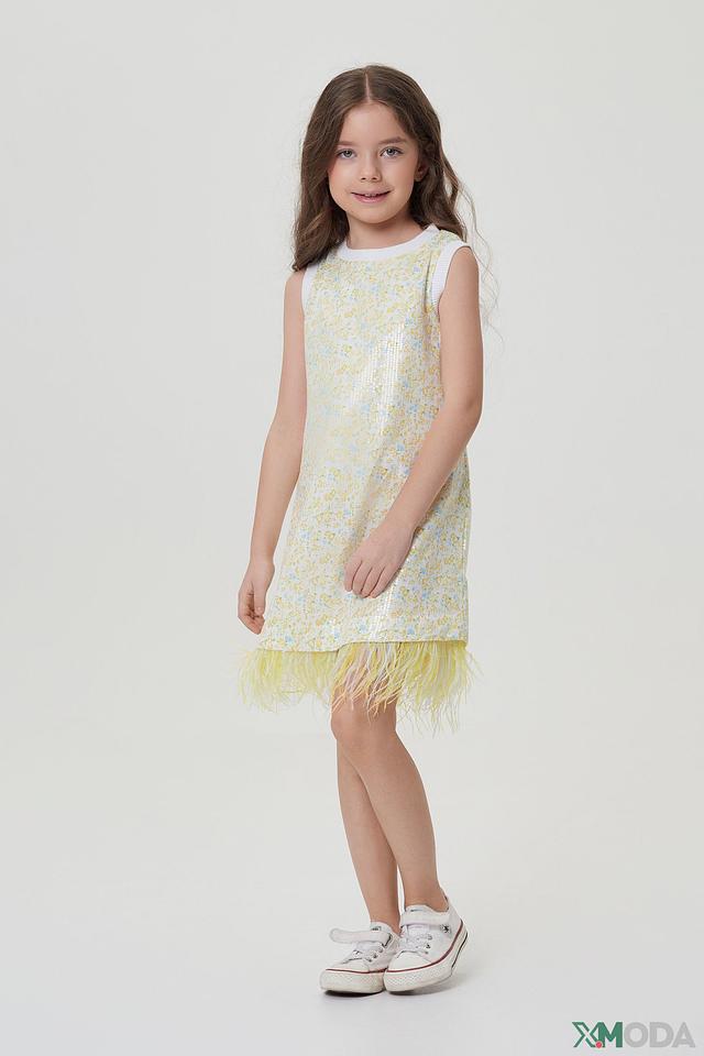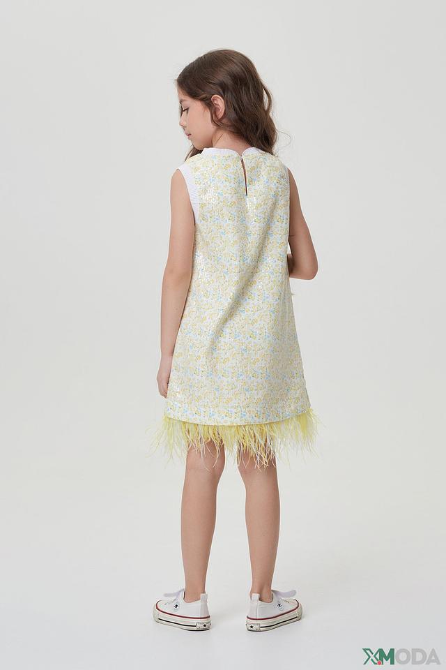 Оригинальный дизайн платья подчеркнет индивидуальность ребенка. Яркие пайетки и воздушные перья создают неповторимый образ, подходящий для торжественных мероприятий или фотосессий.