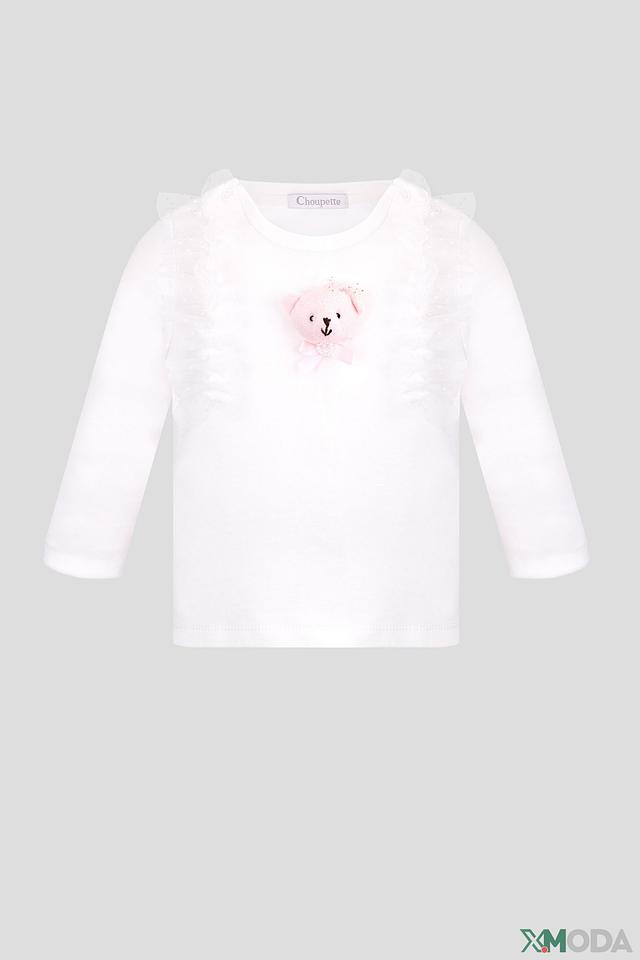 Белый джемпер Choupette для девочки с очаровательным принтом мишки. Модель выполнена из мягкого хлопка и дополнена воланами на плечах, что придает ей нежный и праздничный вид. Состав: хлопок 100%