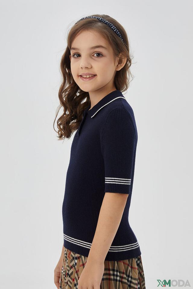 Джемпер Choupette для девочки, тёмно-синего цвета, выполнен в стиле поло с короткими рукавами. Модель дополнена белой полоской на воротнике и манжетах, а также тремя пуговицами. Удобный и стильный выбор для юных модниц. Состав: вискоза 50%, полиэстер 30%, полиамид 20%