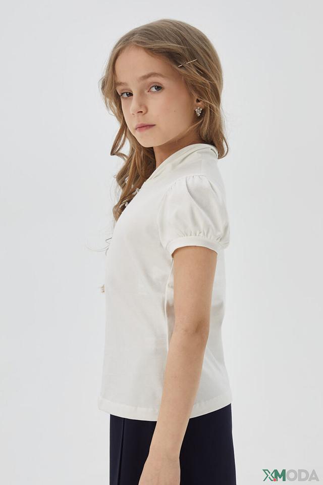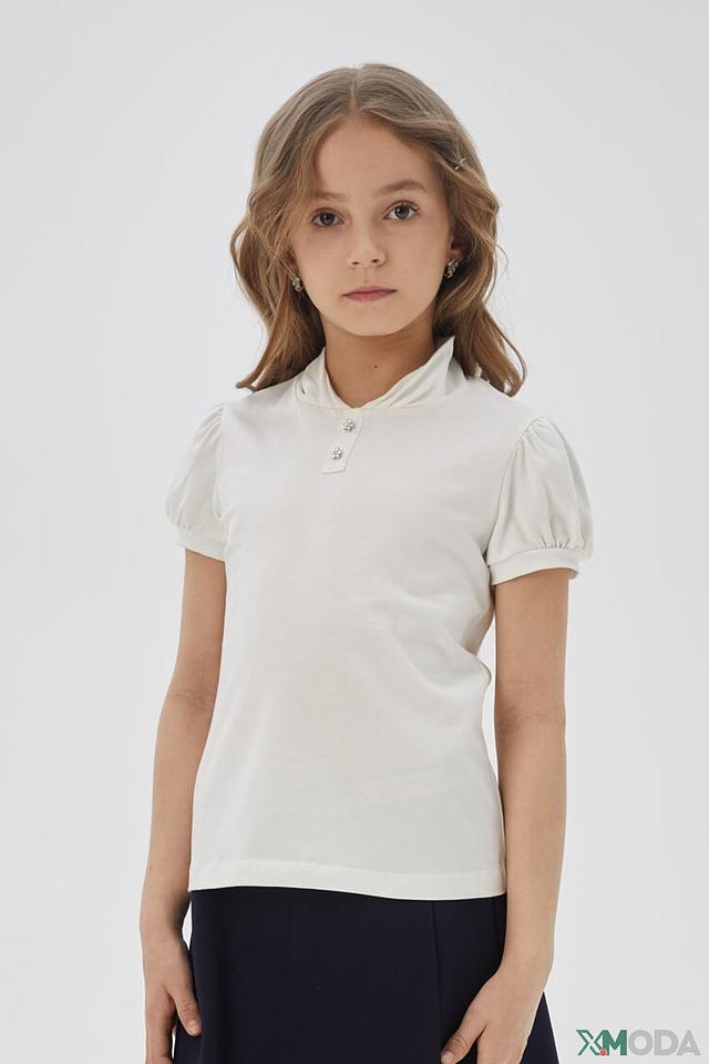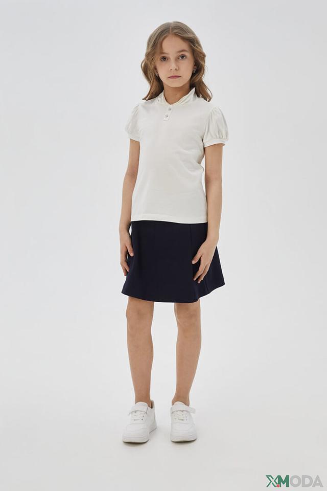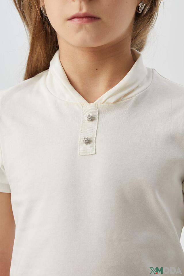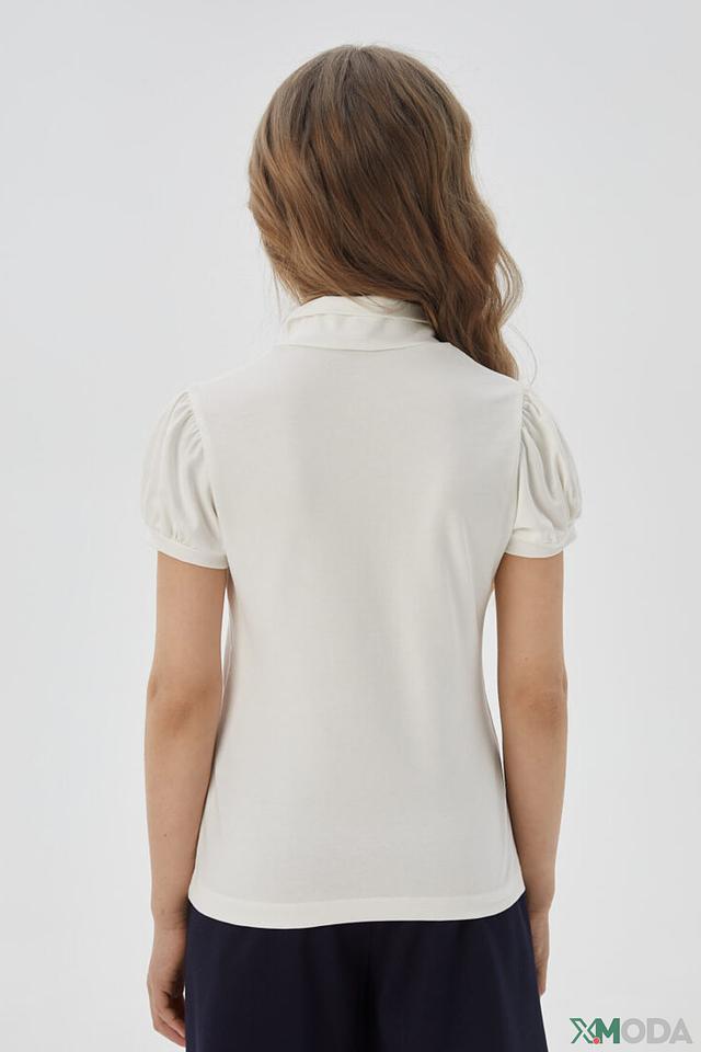 Особенностью данной модели являются короткие рукава-фонарики, которые придают образу романтичность и кокетливость. Воротник-поло с декоративными пуговицами дополняет стильный дизайн. Поло станет отличным дополнением к школьному гардеробу или образу для прогулок.