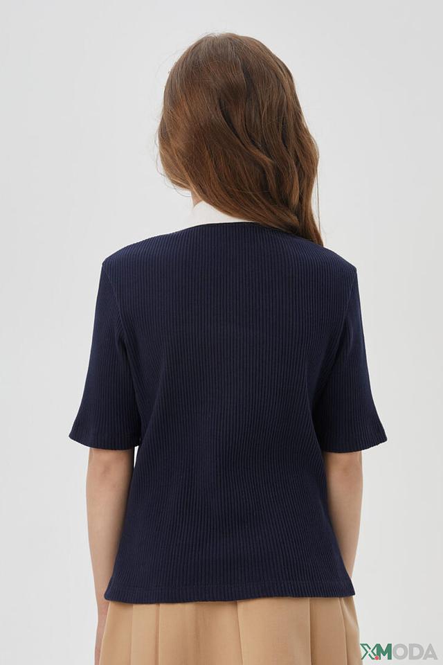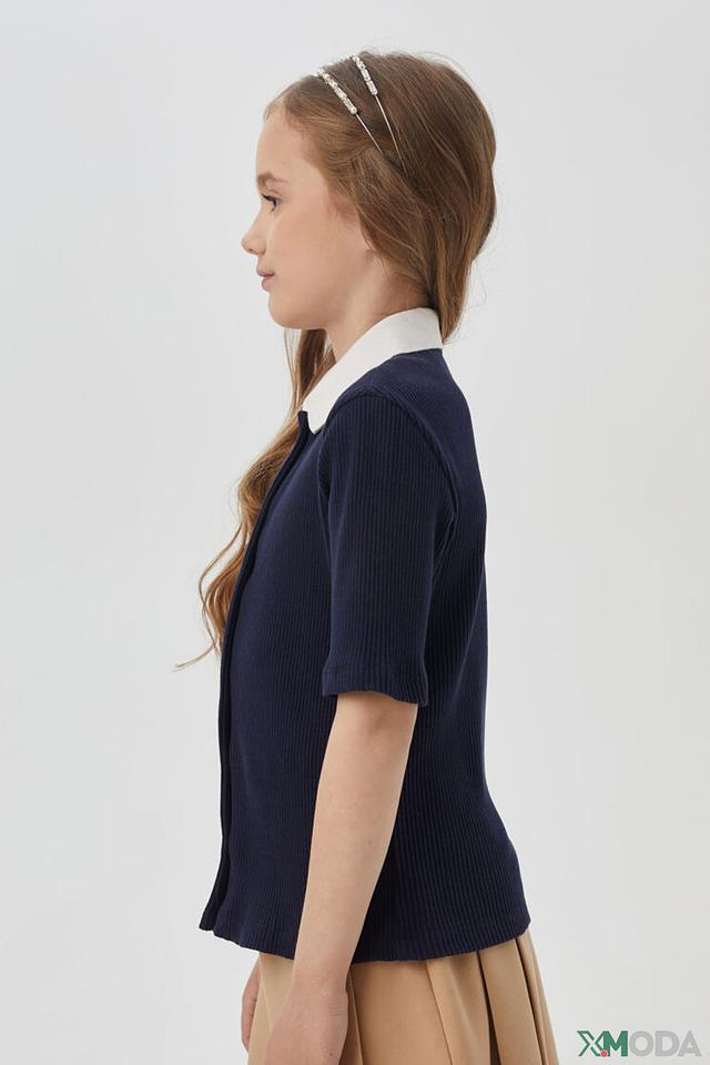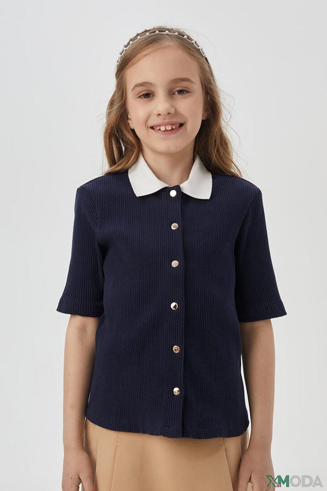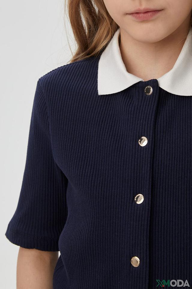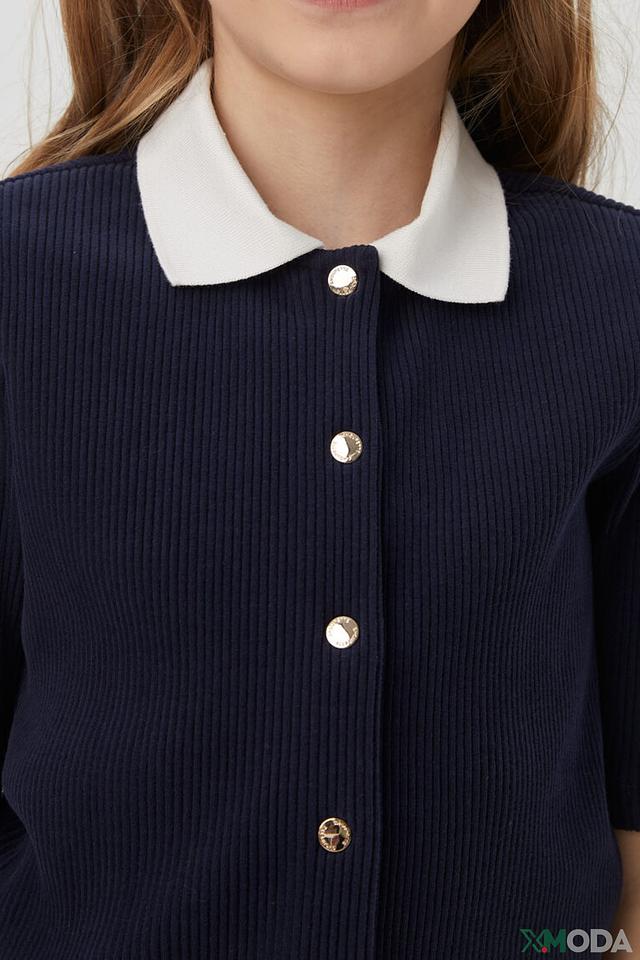 Стильная блуза Choupette синего цвета с контрастным белым воротником станет отличным дополнением к школьному гардеробу девочки. Модель выполнена из мягкого хлопкового трикотажа в рубчик и застегивается на пуговицы. Состав: хлопок 95%, полиуретан 5%