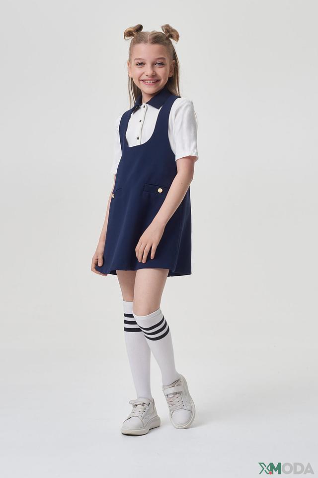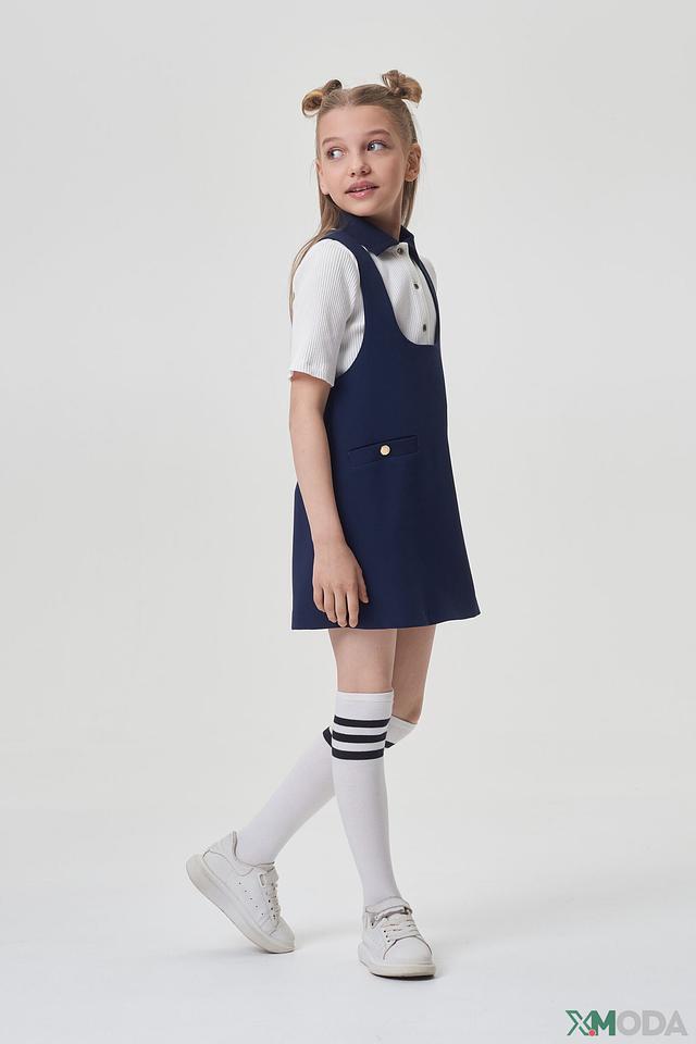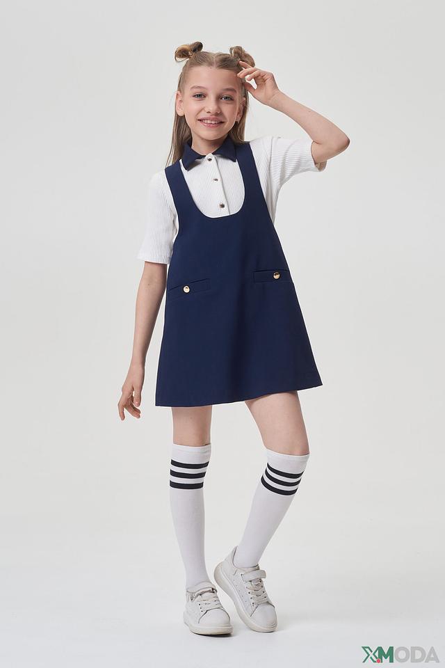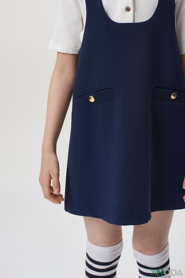 Синий сарафан от Choupette – стильная и удобная модель для девочек. Платье выполнено из качественного сочетания вискозы и полиэстера, имеет аккуратный воротничок и удобные карманы. Идеально подходит для школьной формы или повседневной носки. Состав: Состав_подкладка вискоза 100%, полиэстер 63%, вискоза 32%, полиуретан 5%