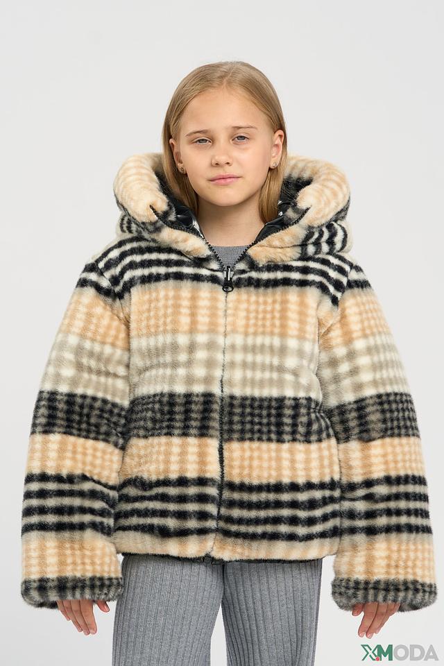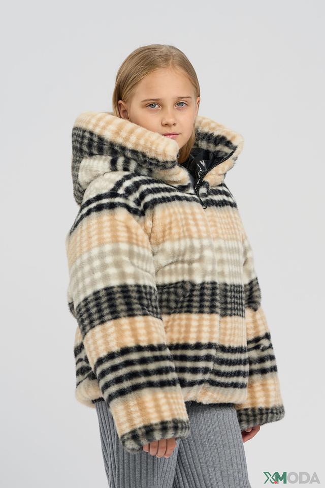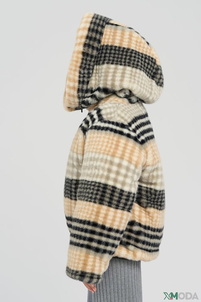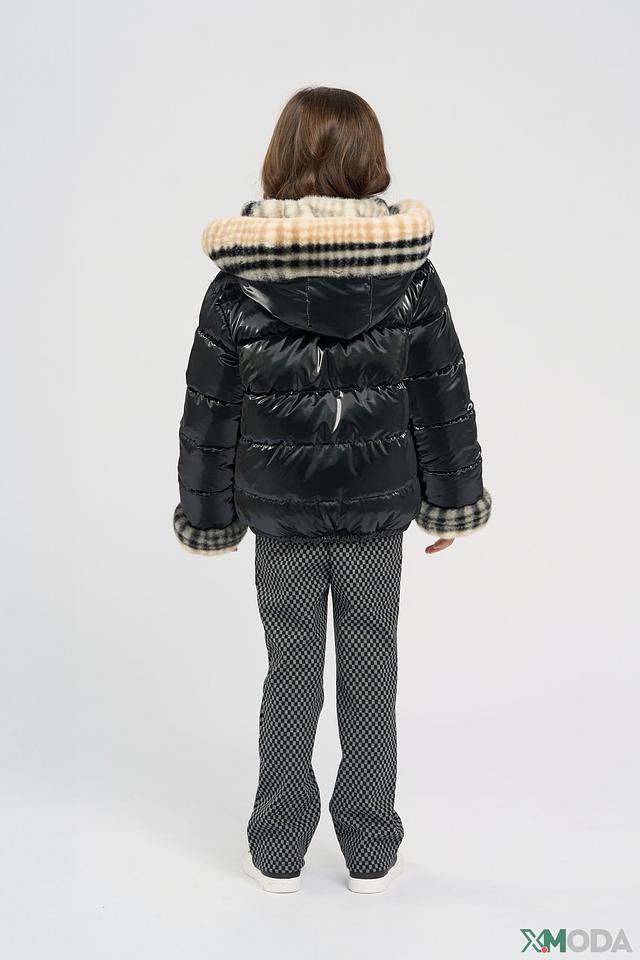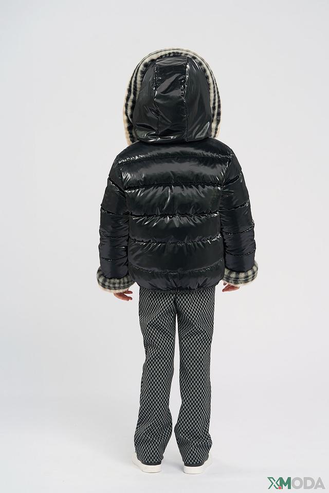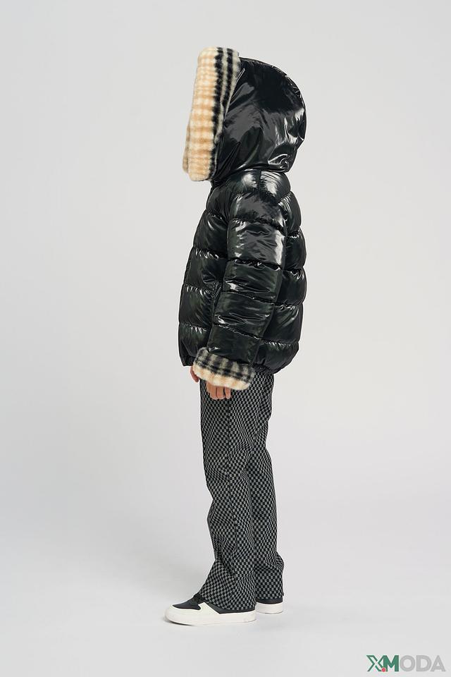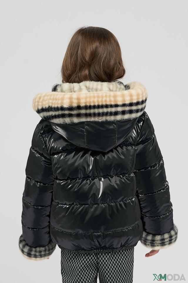 • Дизайн: Куртка двусторонняя. Одна сторона – глянцевая черная, вторая – мягкая плюшевая с контрастным клетчатым принтом. Меховая оторочка капююшона и манжет добавляет изделию изысканности.