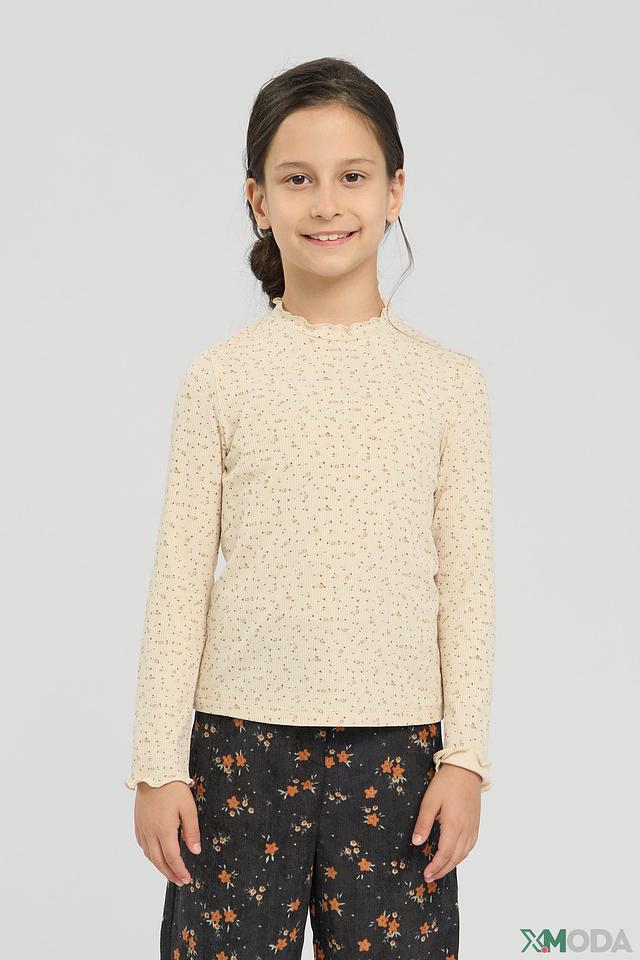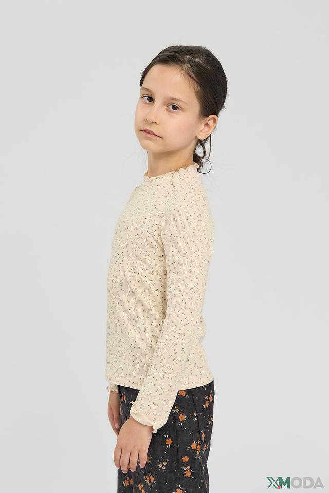 Высокий воротник-стойка с рюшами добавляет изысканности, а длинные рукава с аккуратными манжетами защитят от прохлады. Джемпер идеально сочетается с брюками, юбками и джинсами, позволяя создавать разнообразные образы для школы, прогулок и особых случаев.