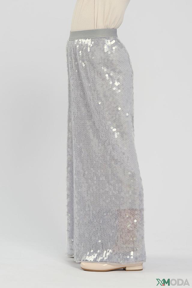 Стильные брюки от Choupette серебристого цвета, полностью расшитые пайетками, станут ярким дополнением к образу юной модницы. Модель отличается широким кроем и удобной посадкой. Состав: полиэстер 100%, Состав_подкладка модал 95%, Состав_подкладка полиуретан 5%