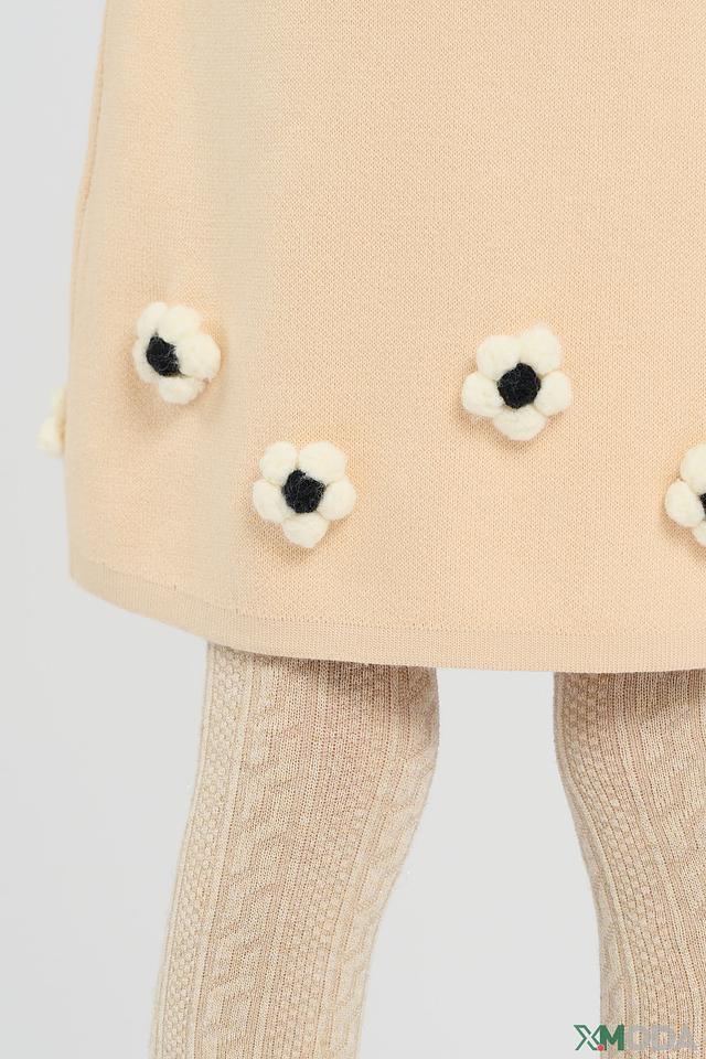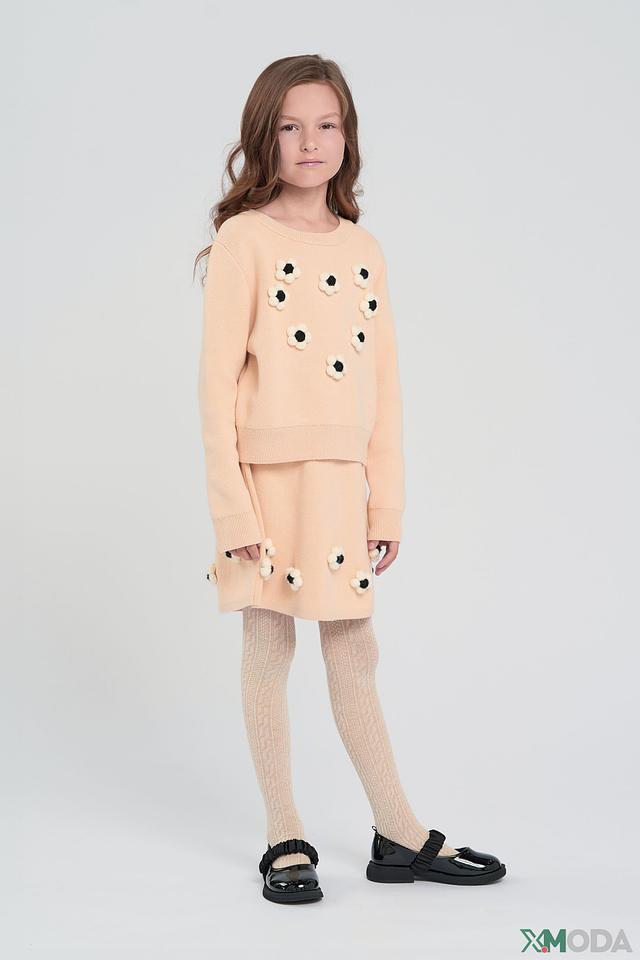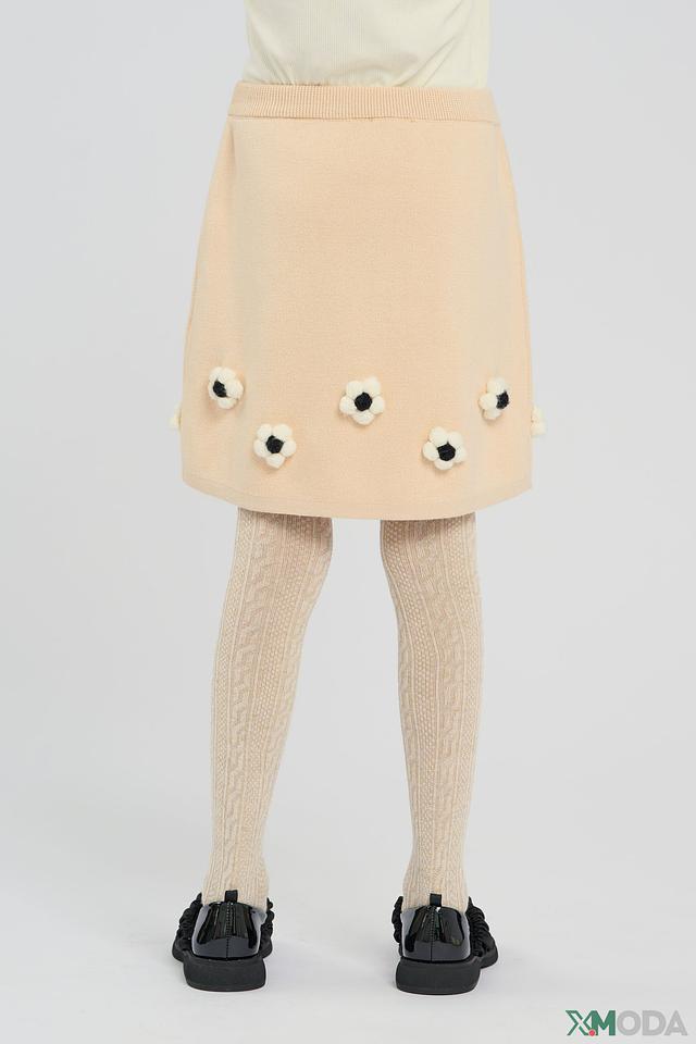 Юбка имеет удобный эластичный пояс, обеспечивающий комфортную посадку. Оригинальный декор в виде объёмных цветов придает образу игривость и неповторимость.