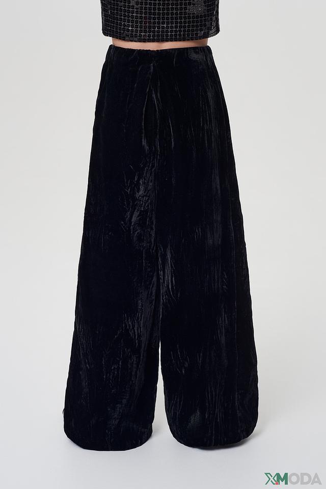 Особенности дизайна: прямой крой, широкие штанины, высокая посадка. Бархатная ткань придает брюкам роскошный вид и мягкость. Данная модель идеально сочетается с блузками, топами и жакетами, создавая элегантные и стильные образы.