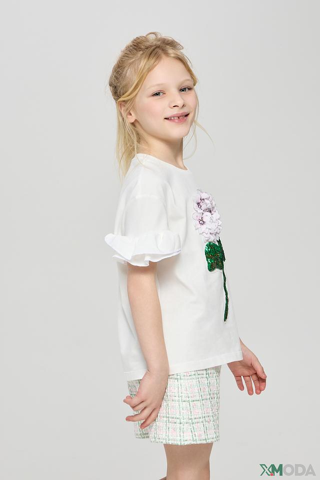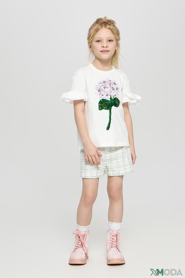 Эта футболка идеально подойдет для создания повседневных образов. Ее можно сочетать с шортами, юбками или брюками. Она станет отличным выбором для прогулок, игр и посещения детских мероприятий. Состав: 90% хлопок, 10% полиуретан.