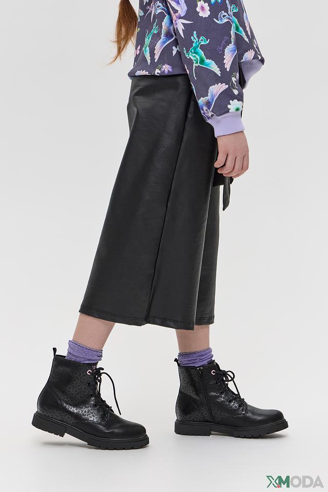 Чёрные брюки-кюлоты от Choupette – стильный и удобный выбор для юных модниц. Модель выполнена из качественной экокожи и дополнена декоративным поясом с кисточками. Состав: хлопок 95%, полиуретан 5%