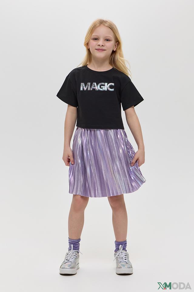 Эта стильная блуза от Choupette станет отличным выбором для юных модниц. Она выполнена в классическом чёрном цвете и украшена яркой надписью "MAGIC", выполненной с использованием блестящих элементов, что придает ей особый шарм.