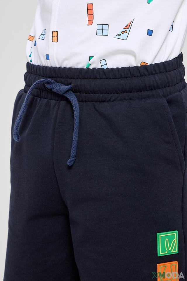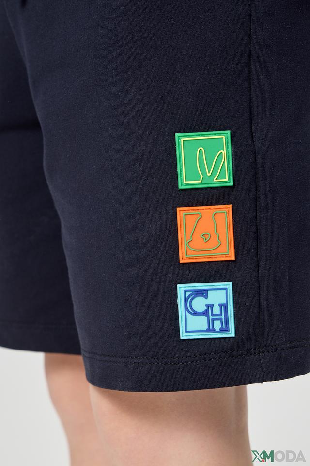 Шорты имеют классический крой и эластичный пояс с регулируемой кулиской, благодаря чему они идеально сидят по фигуре. Яркие аппликации в виде геометрических фигур и пиксельных элементов придают им игривый и современный вид.