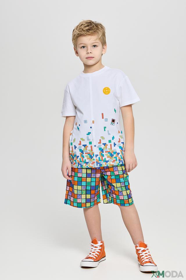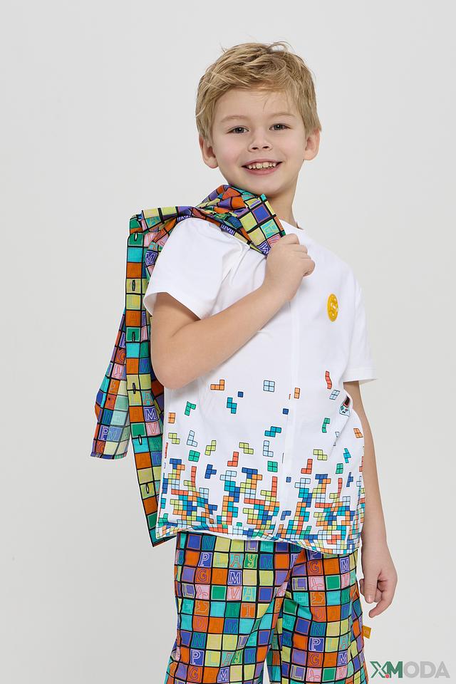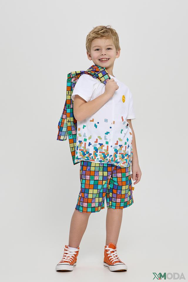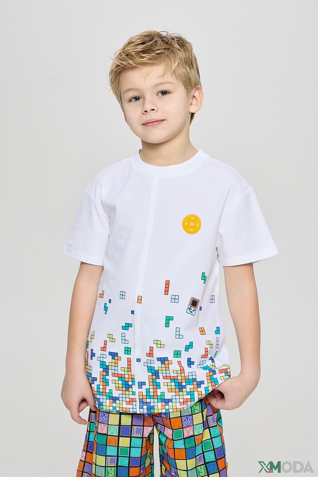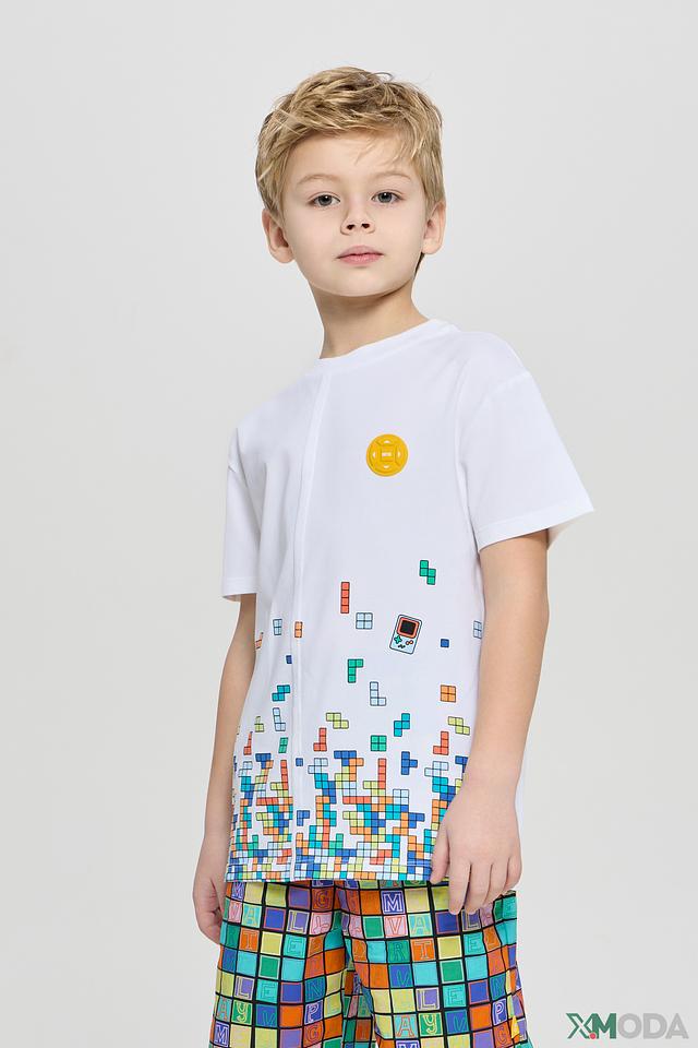 Белая футболка Choupette с ярким принтом в виде элементов тетриса – отличный выбор для активных мальчиков. Изготовлена из мягкого хлопка с добавлением эластана для комфорта и свободы движений. Состав: хлопок 96%, эластан 4%