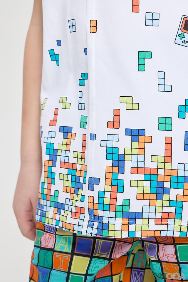 Эта стильная футболка от Choupette станет любимой вещью в гардеробе вашего мальчика. Футболка выполнена в белом цвете и украшена оригинальным принтом, изображающим элементы популярной игры тетрис. Принт выполнен в ярких и насыщенных цветах, что делает футболку особенно привлекательной.