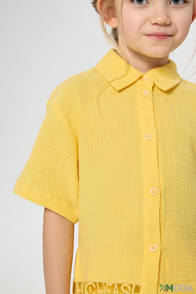 Жёлтая блуза Choupette для девочки выполнена из 100% хлопка. Лёгкая и комфортная модель с короткими рукавами и застёжкой на пуговицы идеально подойдёт для летних прогулок и активного отдыха. Состав: хлопок 100%