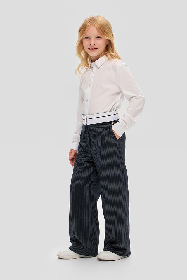 Стильные брюки Choupette для девочки, тёмно-синего цвета в вертикальную полоску, с широкими штанинами и эластичным поясом. Модель выполнена из качественного смесового материала, обеспечивающего комфорт и удобство в носке. Состав: Состав_подкладка вискоза 100%, полиэстер 74%, вискоза 23%, полиуретан 3%