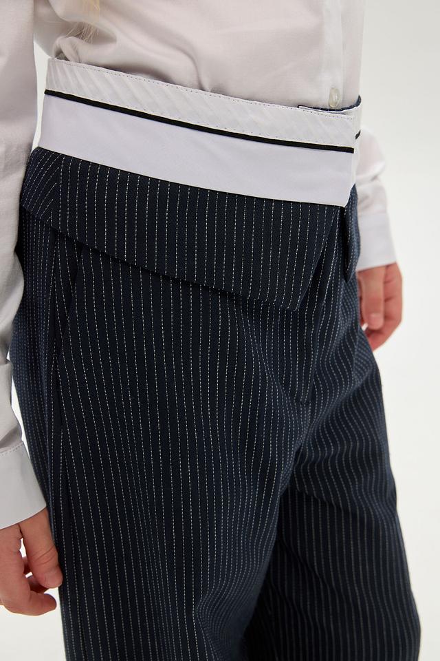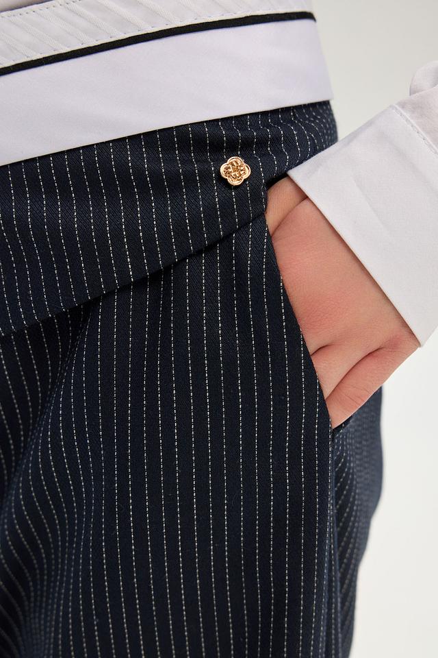 Представляем модные брюки от бренда Choupette, созданные для юных модниц. Эта модель выполнена в тёмно-синем цвете с вертикальной полоской, что придает ей элегантный и стильный вид.