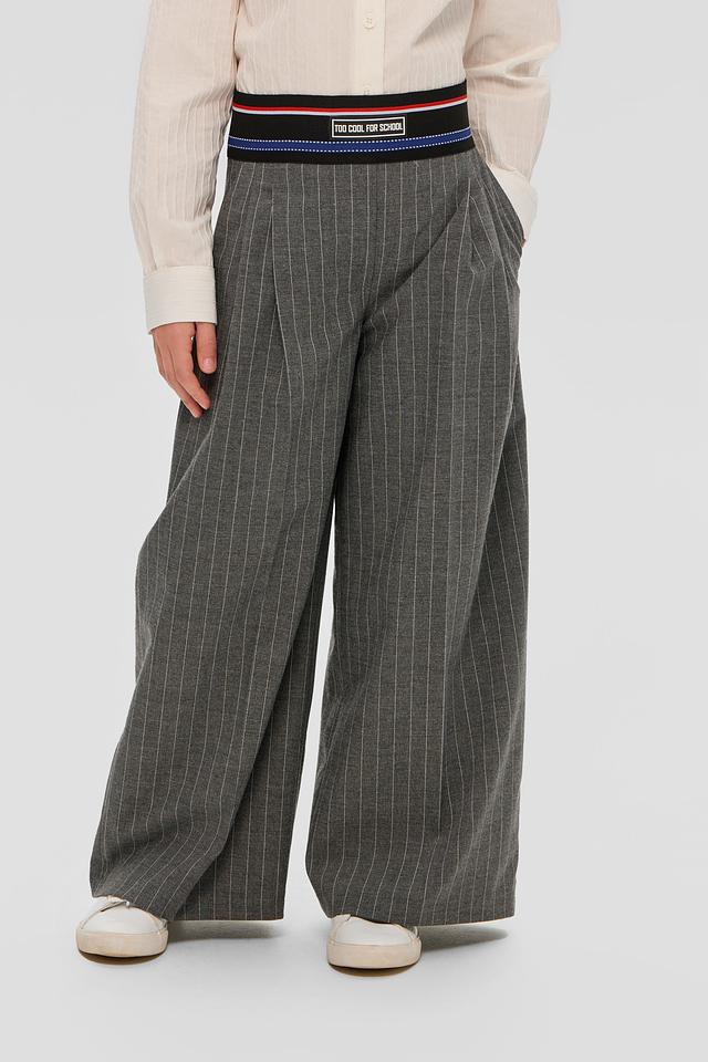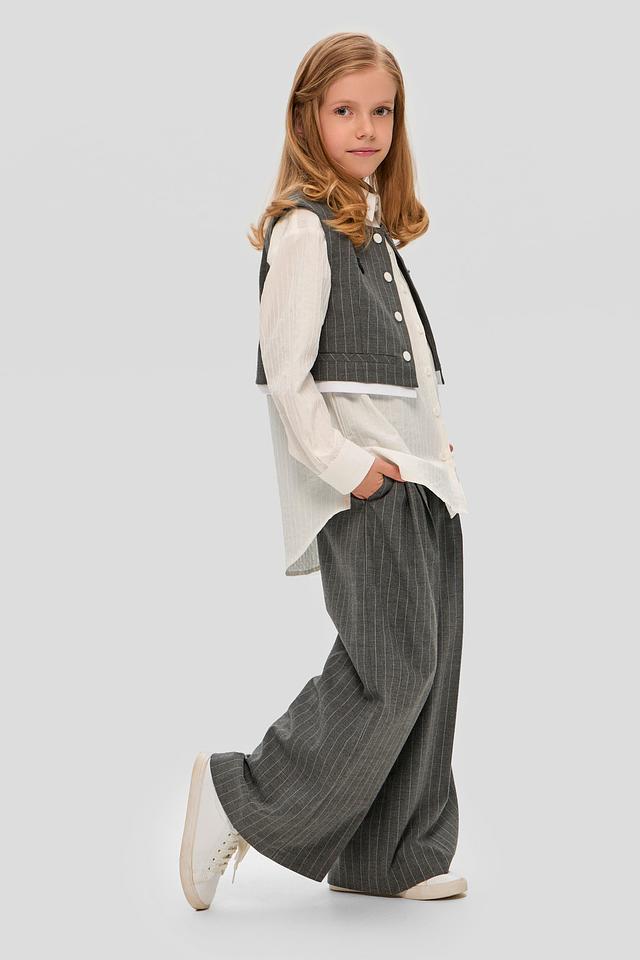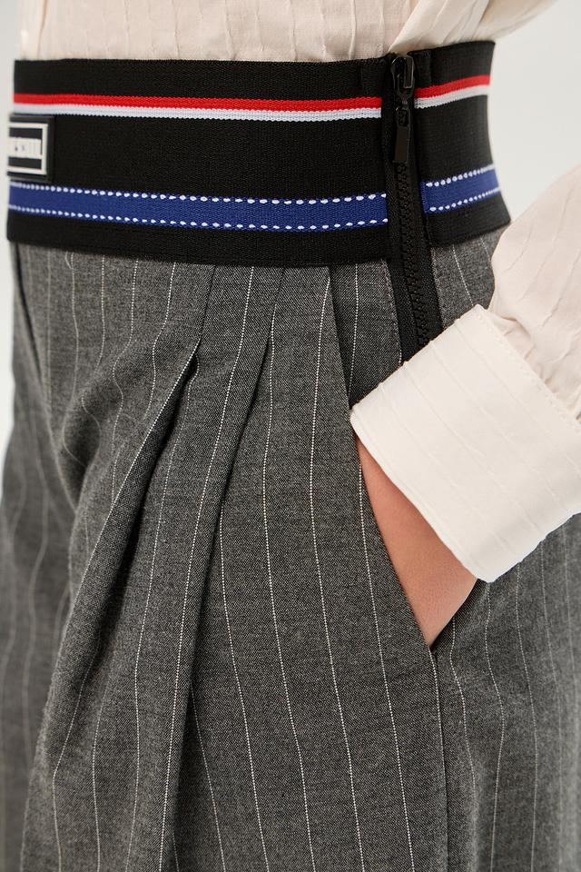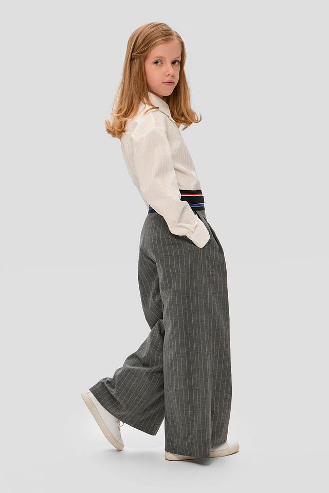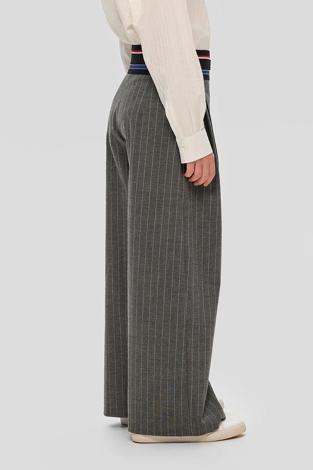 Стильные брюки от Choupette серого цвета с вертикальной полоской станут отличным дополнением к гардеробу юной модницы. Модель выполнена в свободном крое с широкими штанинами и эластичным поясом, обеспечивающим комфортную посадку. Состав: Состав_подкладка вискоза 100%, полиэстер 64%, вискоза 32%, полиуретан 4%