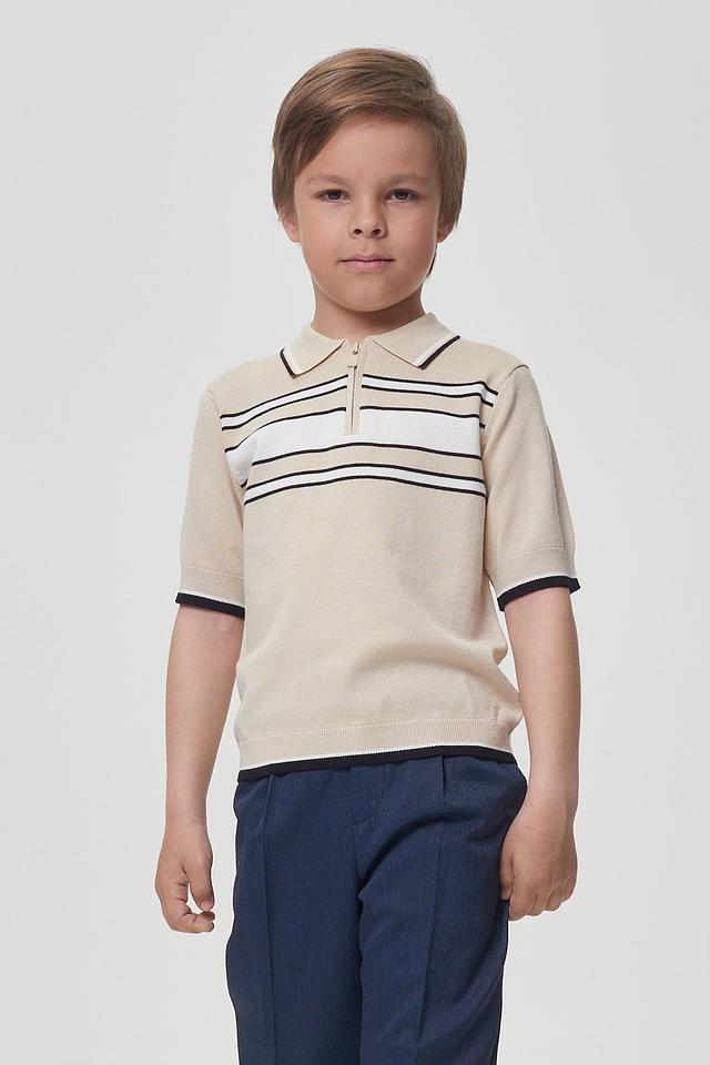 Поло Choupette для мальчика бежевое с полосками и молнией