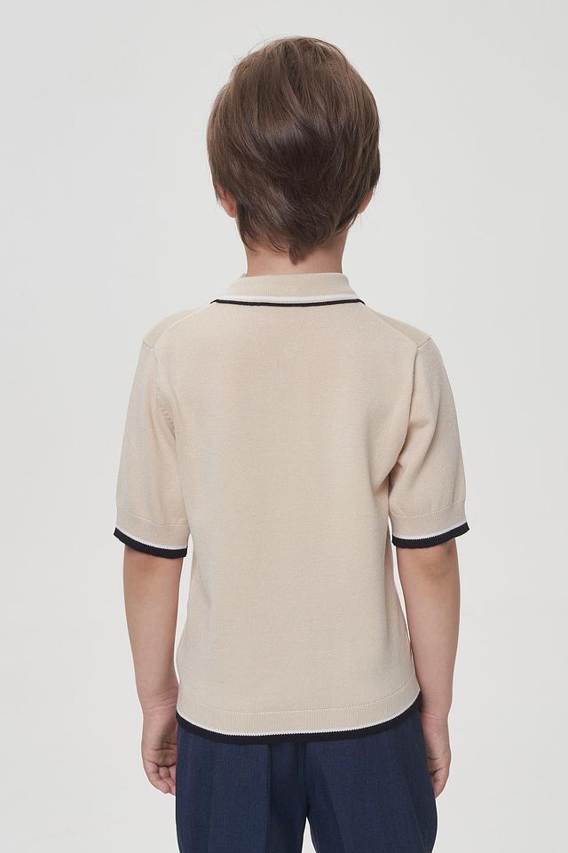 • Элегантный дизайн: Бежевое поло для мальчика украшено контрастными горизонтальными полосками белого и чёрного цветов. Воротник-поло и короткие рукава создают классический вид, а молния добавляет практичности и современного шика в повседневную одежду.