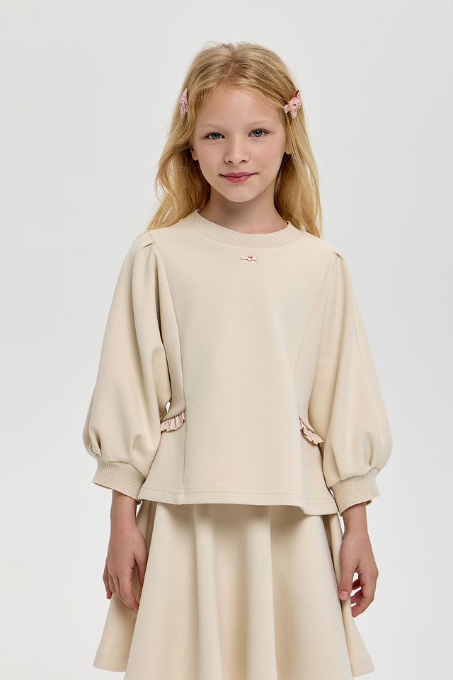 Джемпер Choupette для девочки кремового цвета с рукавами-фонариками. Изготовлен из мягкого хлопка с добавлением полиэстера и полиуретана для комфорта и долговечности. Состав: хлопок 71%, полиэстер 26%, полиуретан 3%