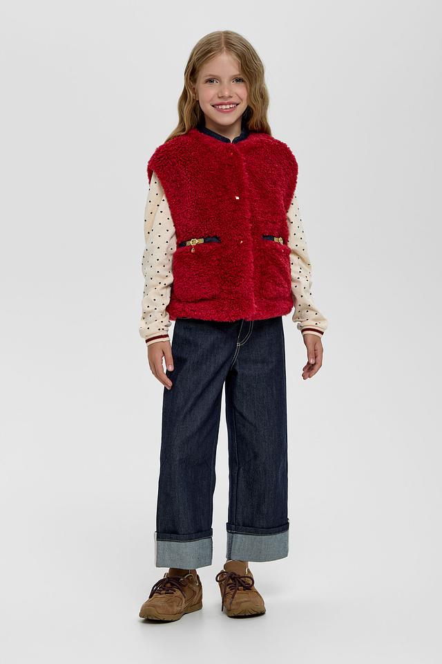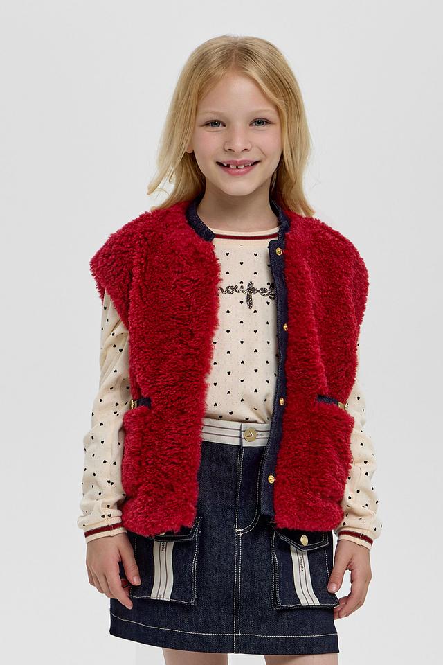 Теплый жилет Choupette бордового цвета станет отличным дополнением к образу юной модницы. Изготовлен из мягкого 100% полиэстера, обеспечивающего комфорт и тепло. Застежка на кнопки с декоративными элементами. Состав: полиэстер 100%, Состав_подкладка вискоза 52%, Состав_подкладка полиэстер 48%