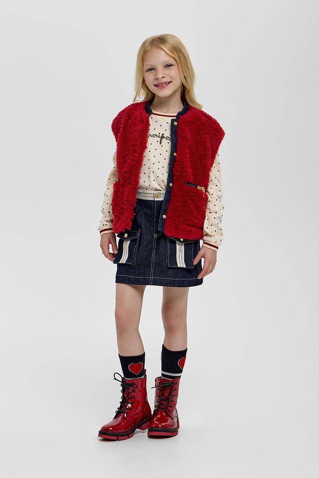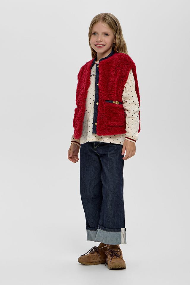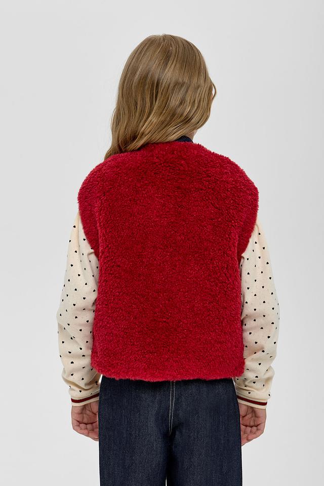 Этот стильный жилет от Choupette станет прекрасным выбором для создания уютного и модного образа вашей девочки. Жилет выполнен в насыщенном бордовом цвете из приятного на ощупь материала, напоминающего овечью шерсть.
