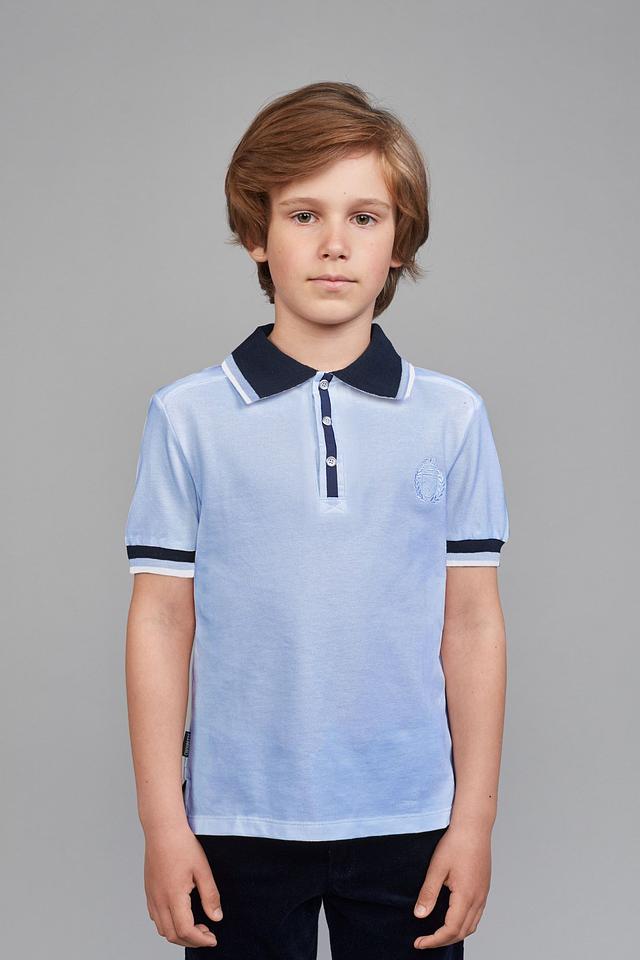 - Стильный дизайн. Модель выполнена в классическом стиле поло с короткими рукавами и отложным воротником. Голубой цвет в сочетании с темно-синими и белыми контрастными элементами на воротнике и манжетах придает изделию элегантный и утонченный вид, подходящий для различных случаев.