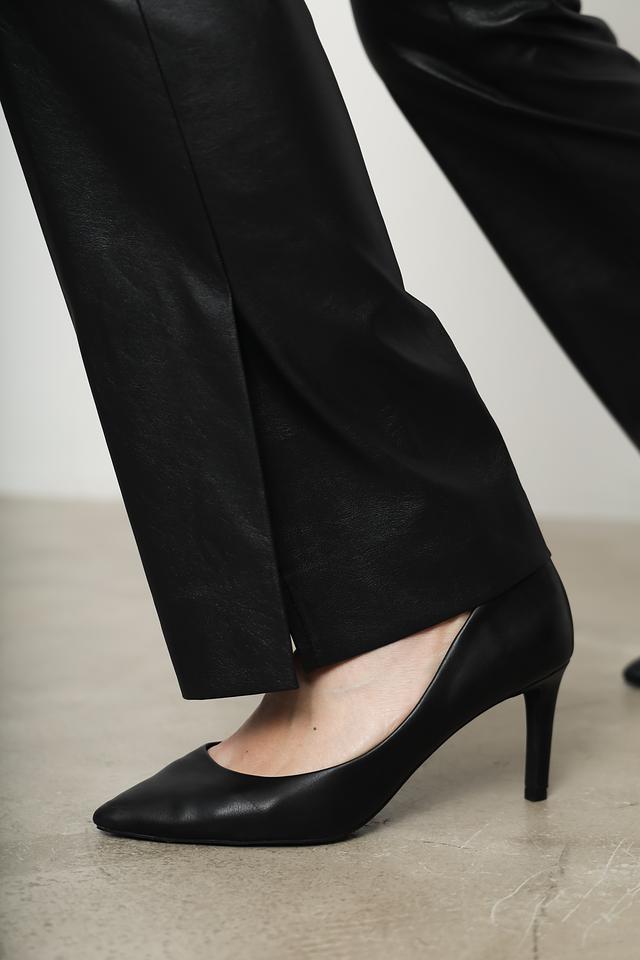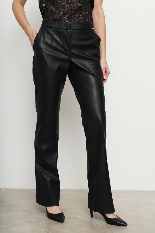 Чёрные брюки от Cinque из высококачественной экокожи — стильное и комфортное решение для создания современного образа. Прямой крой и эластичный пояс обеспечивают удобную посадку по фигуре. Состав: полиэстер 100%