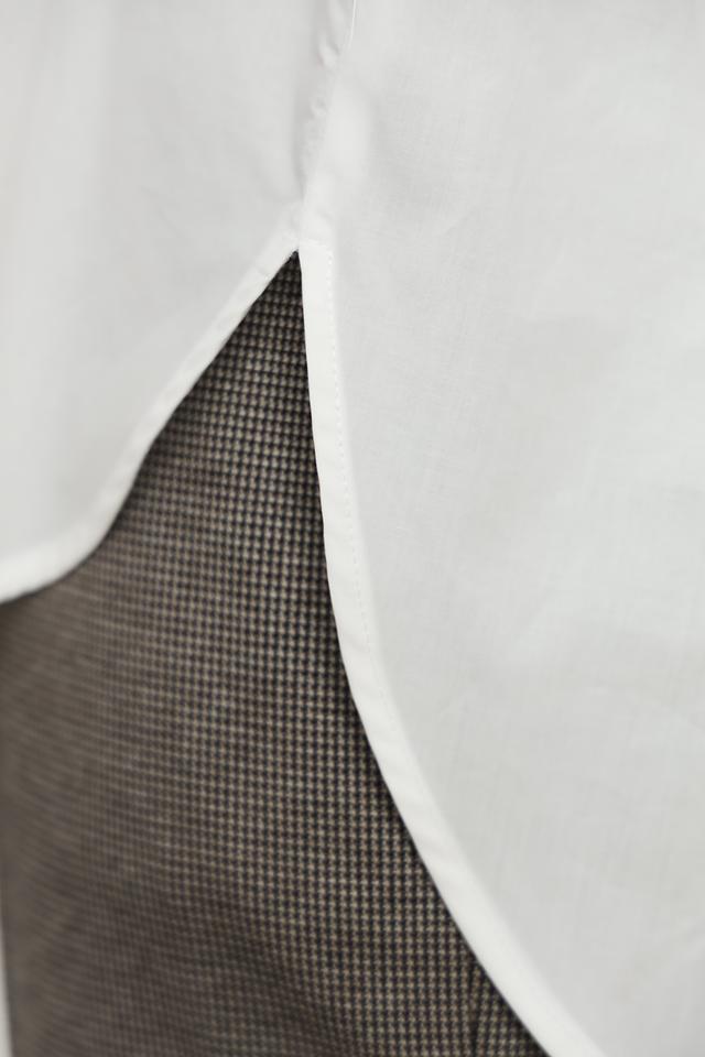 Рубашка имеет свободный крой оверсайз, который обеспечивает свободу движений и позволяет создавать многослойные образы. Классический воротник и длинные рукава делают эту модель универсальной и подходящей для различных случаев.