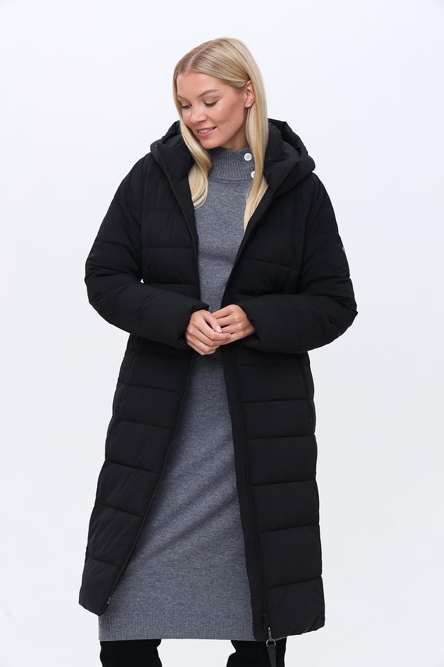 Пальто застегивается на молнию, имеет капюшон и два боковых кармана. Состав: 88% полиамид, 12% эластан. Это пальто станет отличным дополнением к вашему гардеробу и защитит от непогоды.