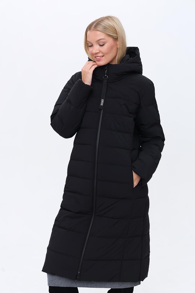Это женское пальто от бренда Cinque выполнено в классическом чёрном цвете. Пальто имеет прямой крой и длину до середины икры, что делает его универсальным для различных образов.