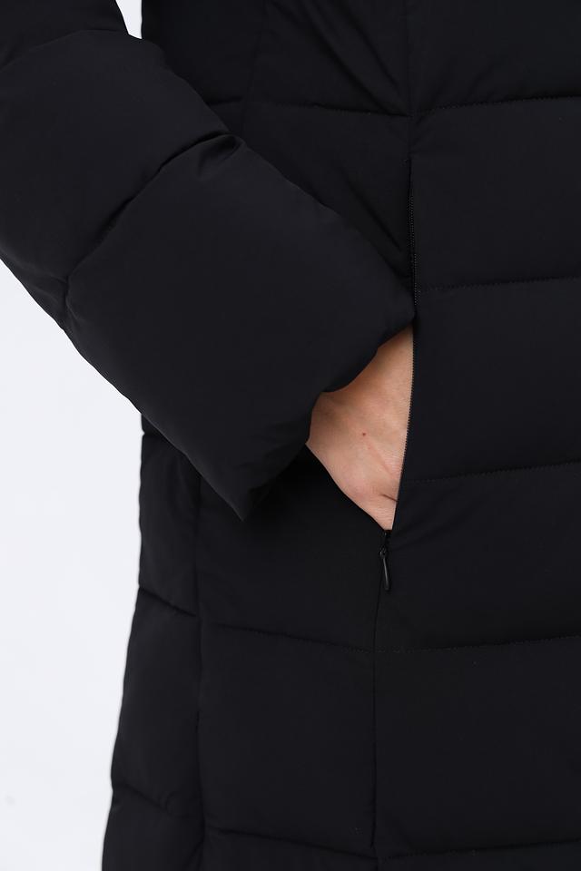 Верхняя ткань пальто – полиамид, а подкладка и утеплитель содержат эластан, что обеспечивает комфорт и свободу движений. Стеганая текстура придает пальто современный вид.