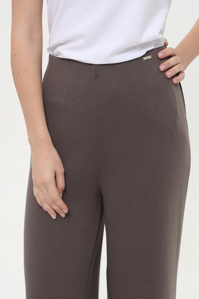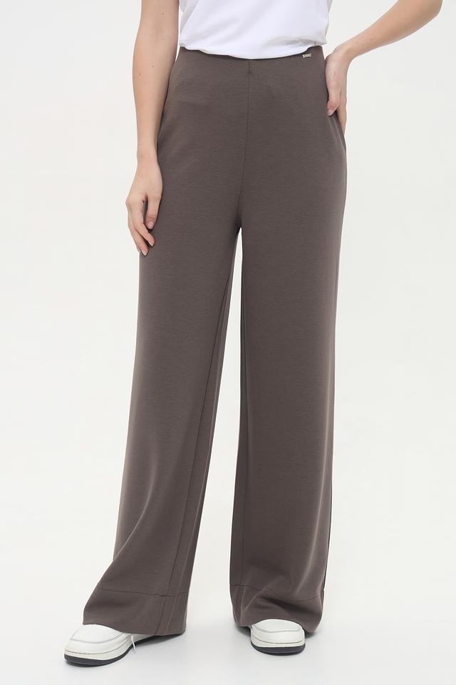 Женские брюки Cinque цвета серо-коричневый, выполнены из мягкой ткани с добавлением вискозы и эластана. Модель палаццо с эластичным поясом обеспечит комфорт и свободу движений. Состав: полиэстер 82%, вискоза 14%, эластан 4%