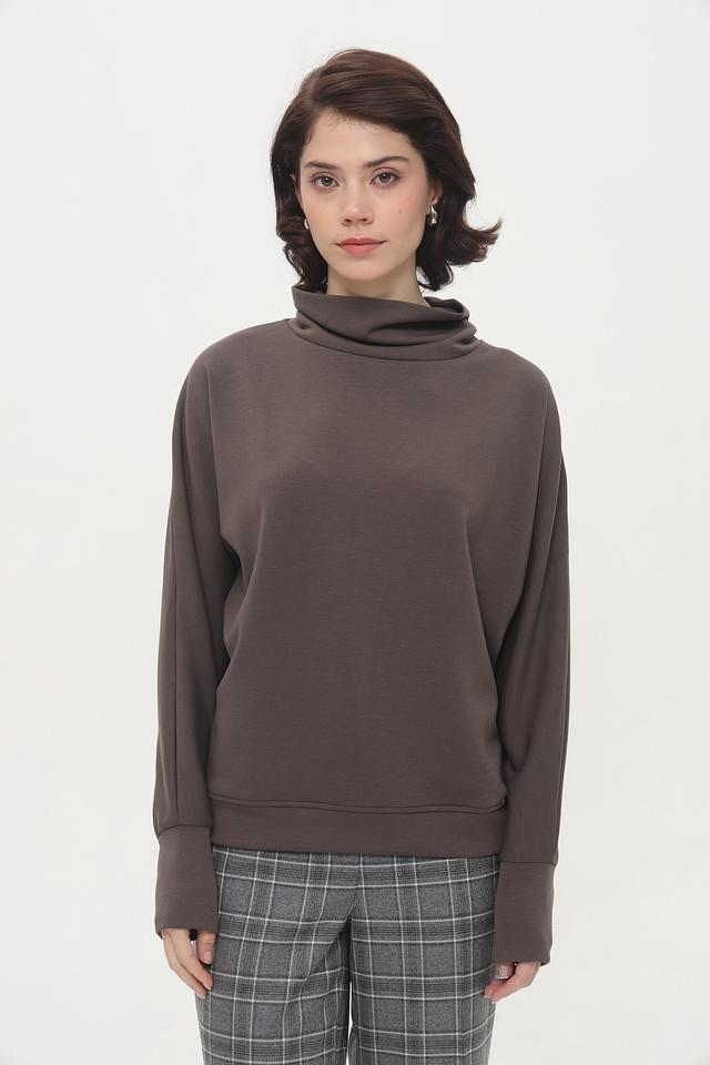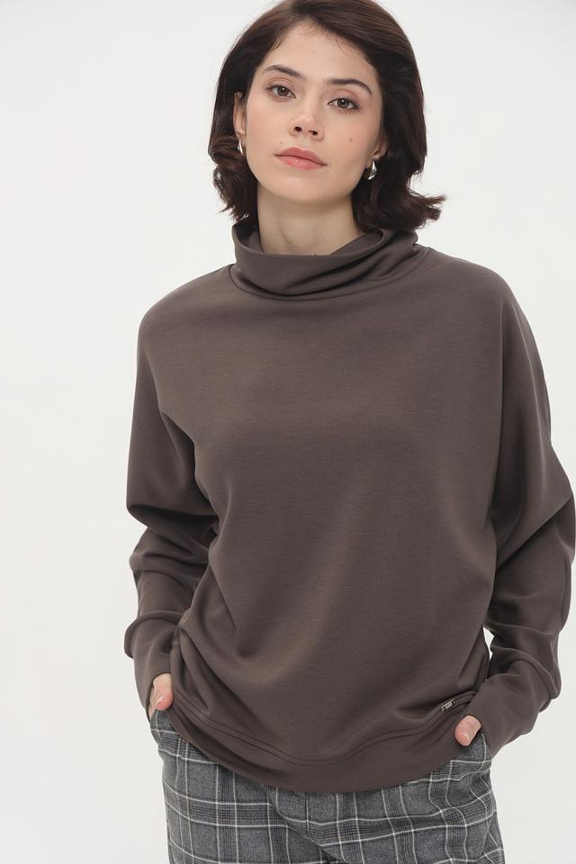 Женский пуловер бренда Cinque коричневого цвета с высоким горлом и свободным кроем. Изготовлен из мягкого и приятного к телу сочетания полиэстера, вискозы и эластана, обеспечивающего комфорт и свободу движений. Состав: полиэстер 82%, вискоза 14%, эластан 4%